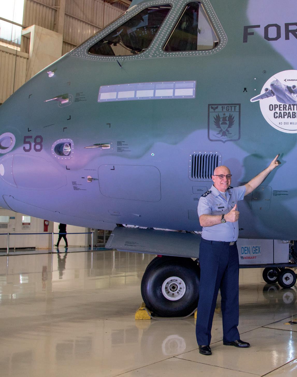 de nossos meios aéreos para atender às demandas do país. Já temos unidades do nosso caça multimissão F-39 Gripen em condições de operar a partir da Base Aérea de Anápolis, o que trará incontáveis benefícios para a nossa defesa aérea. O KC-30, maior aeronave já operada pela FAB, também demonstrou indispensáveis operacionalidade e flexibilidade em diversas missões, com destaque ao apoio prestado pelo Brasil ao trágico terremoto na Turquia. Vimos, ainda, a consolidação do KC-390 Millennium como a espinha dorsal da Aviação de Transporte, integrando todo o território nacional com dinamismo.