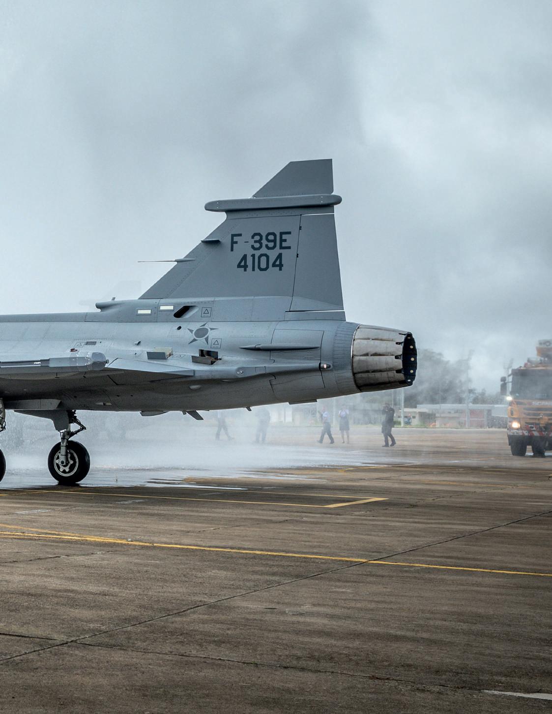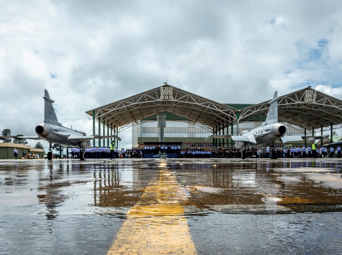 Novo salto tecnológico. As primeiras aeronaves F-39 Gripen, entregues ao Primeiro Grupo de Defesa Aérea, em Anápolis (GO), colocam a FAB num patamar de equilíbrio com as principais Forças Aéreas do mundo