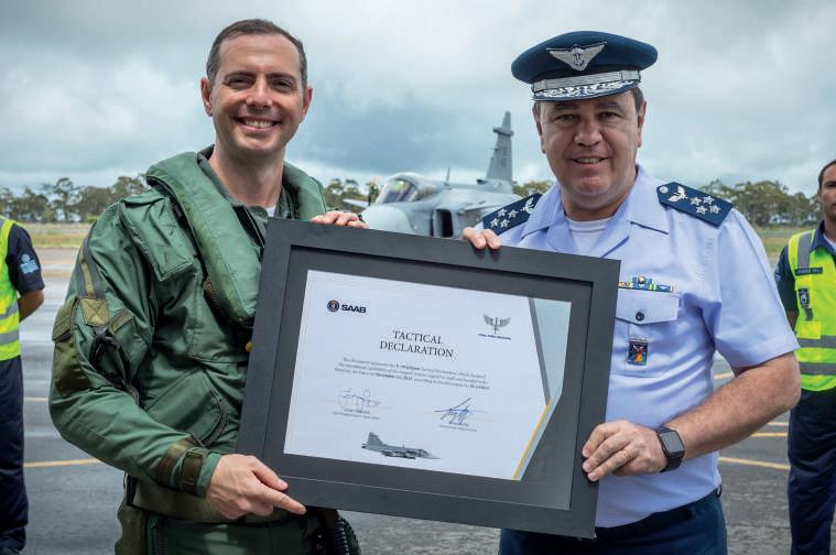 a empresa sueca e a FAB. “Os novos caças Gripen elevarão a segurança a um novo patamar, garantindo a soberania do Brasil e ajudando o país a fortalecer o controle de suas fronteiras e proteger seu povo e sua sociedade. O Brasil tem, agora, um dos caças mais avançados do mundo. Obrigado e parabéns por alcançar esse importante marco”, pontuou.