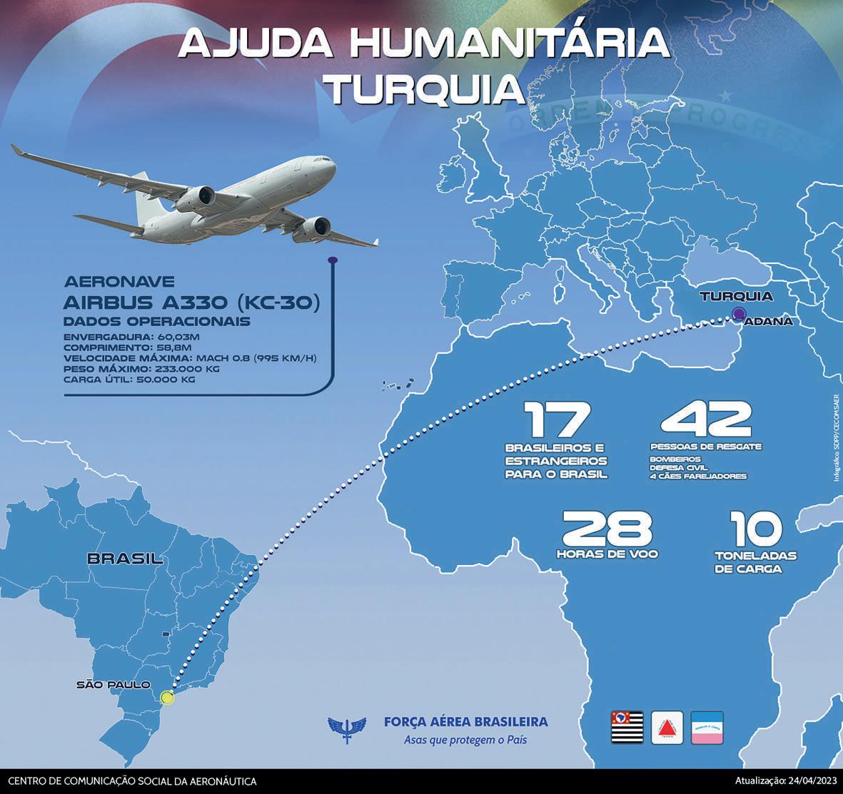 Outro destaque relevante, foi a missão multidisciplinar de assistência humanitária que atuou na República da Turquia. Em reportagem especial, nossa equipe mostra os detalhes do voo que transportou brasileiros e estrangeiros da Turquia para o Brasil. Além disso, conta como foi o trabalho de 42 profissionais de resgate que atuaram por 15 dias naquele país, na busca por sobreviventes e vítimas dos terremotos.