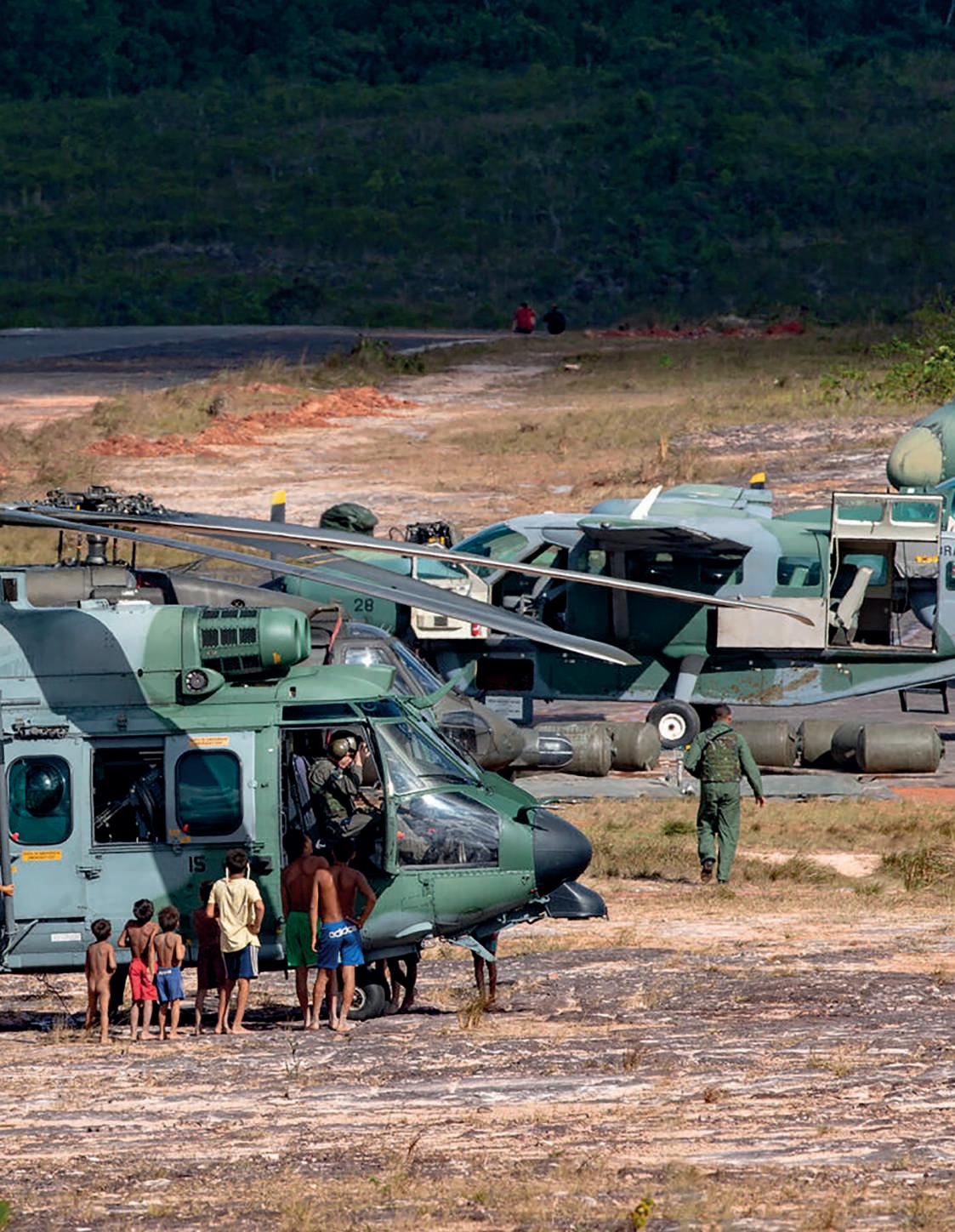 A capa desta edição destaca a nobre missão da Força Aérea Brasileira (FAB), juntamente com a Marinha do Brasil (MB) e o Exército Brasileiro (EB), na Operação Yanomami, reforçando as ações de enfrentamento de Emergência em Saúde Pública de Importância Nacional e de combate ao garimpo ilegal no Terra Indígena Yanomami, em Boa Vista (RR). As ações envolvem lançamentos e distribuição de cestas básicas; Evacuações Aeromédicas (EVAM); controle e fiscalização do espaço aéreo; Transporte Aéreo Logístico; entre muitas outras.