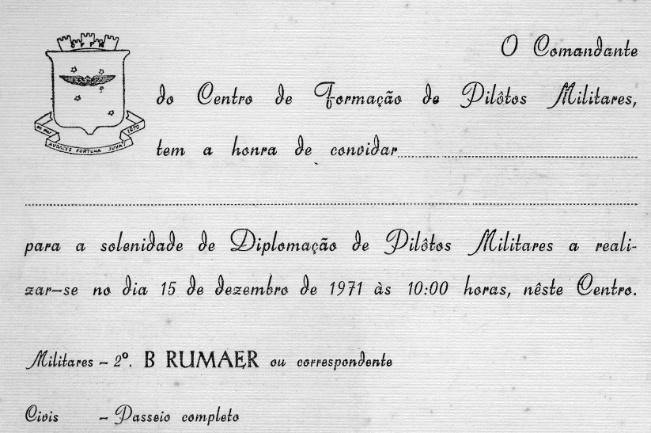 1 O termo Pré-cadete foi utilizado, oficialmente, até meados do ano de 1969, quando, com a chegada do novo Comandante, o Brigadeiro Collares, foi alterado para Aluno. Na revista, optou-se pelo uso do termo Pré-cadete, durante todo o período em que estivemos na EPCAR.