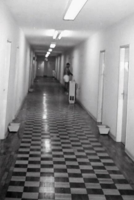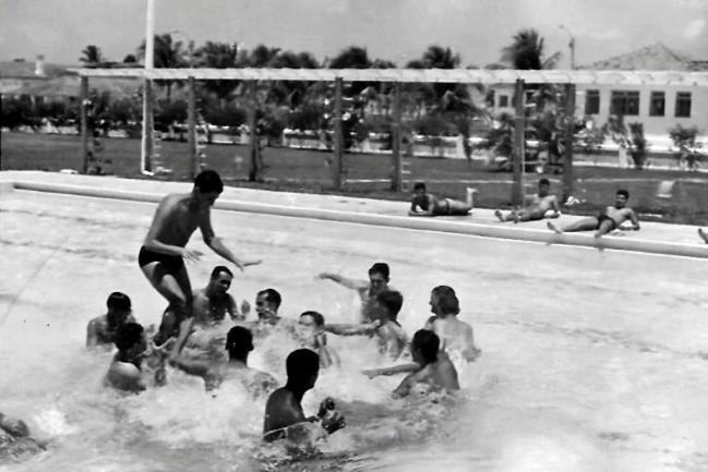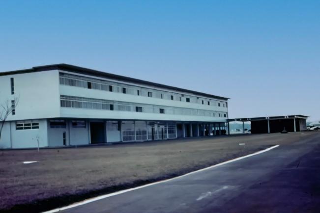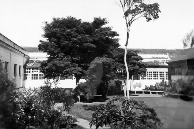 Amanhecemos, chegando num pátio, por volta das seis horas da manhã, próximo de uma instalação que fumegava e que, posteriormente, soubemos que abrigava as caldeiras que aqueciam a água da Escola.