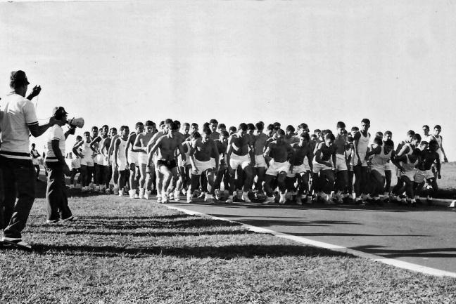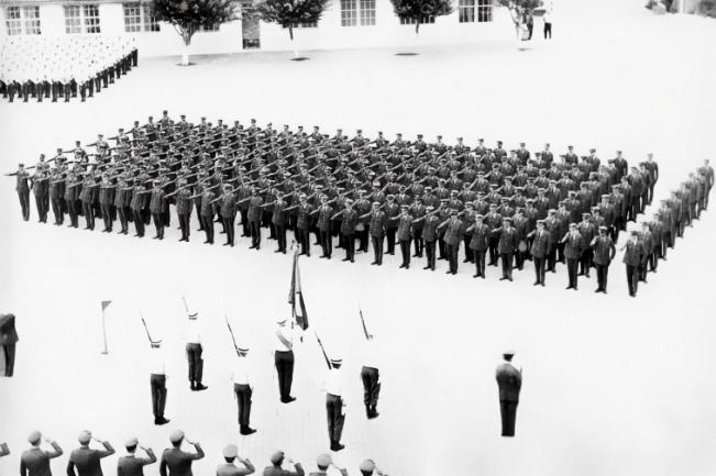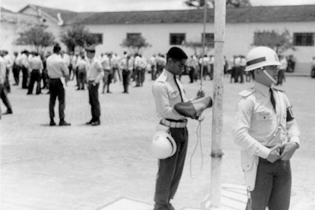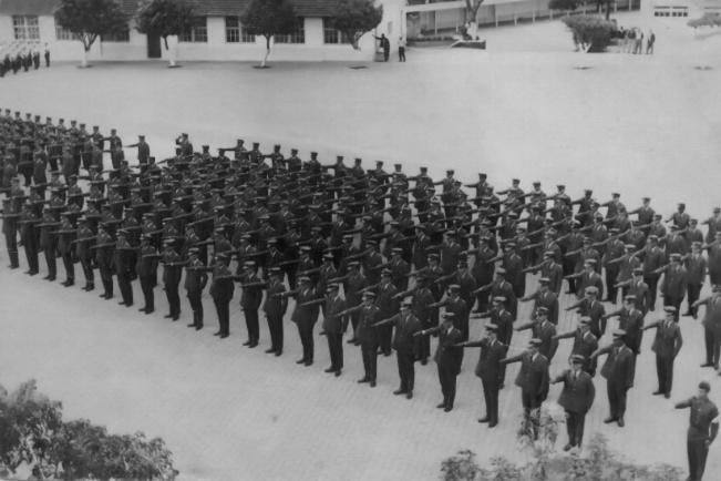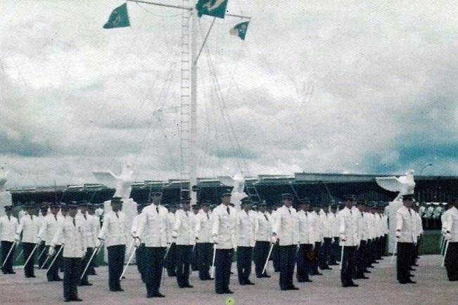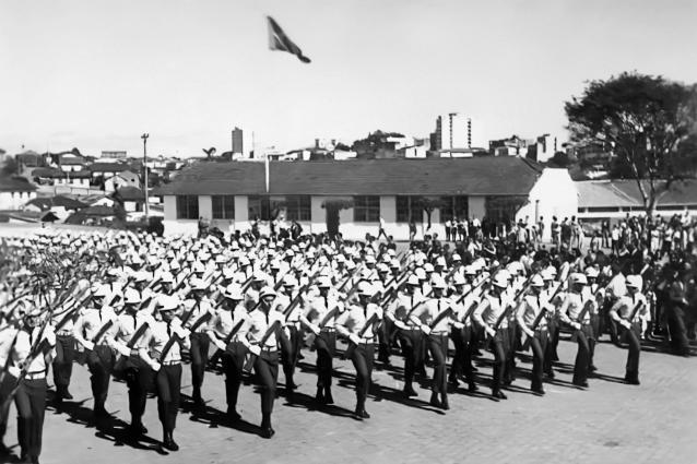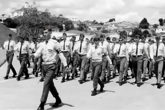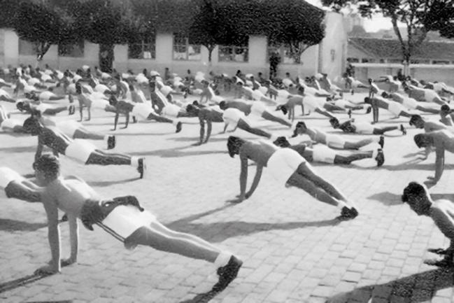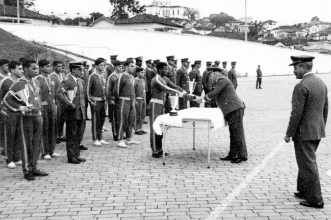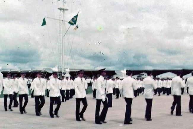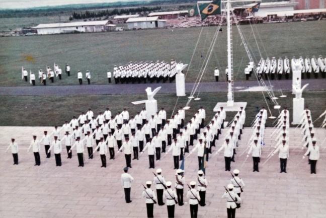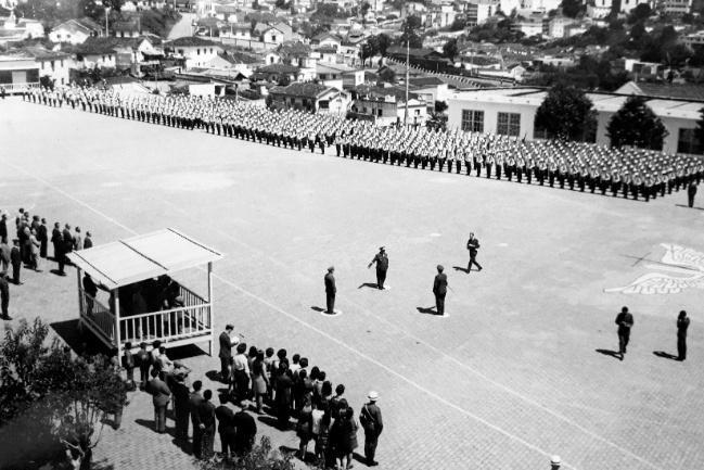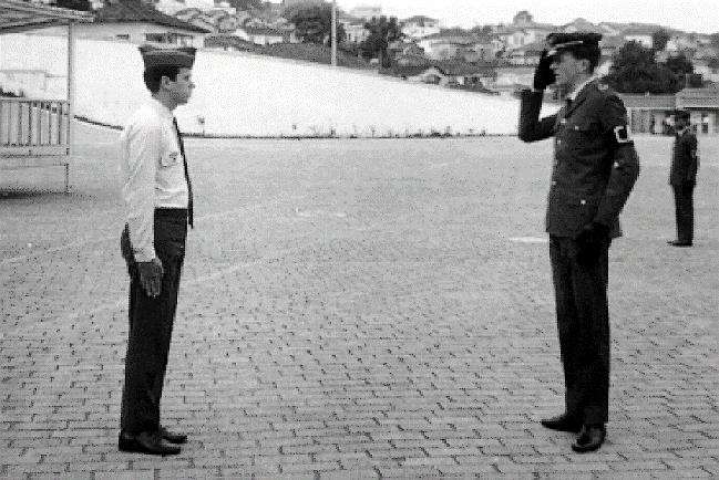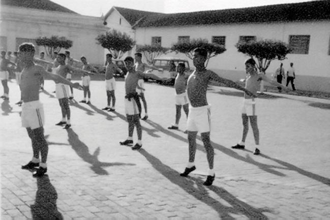 O período de permanência, sem saída do âmbito da Escola, foi grande o suficiente para dar saudades da família e, também, grande o suficiente para os treinamentos iniciais de militança4 e educação física, a fim de discernir quem ficaria e quem desistiria daquela vida em regime de internato, pelo longo período de três anos.