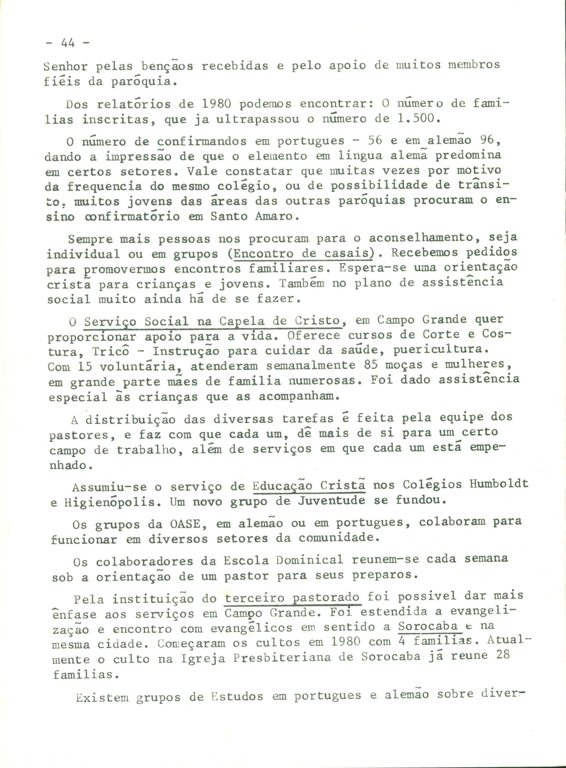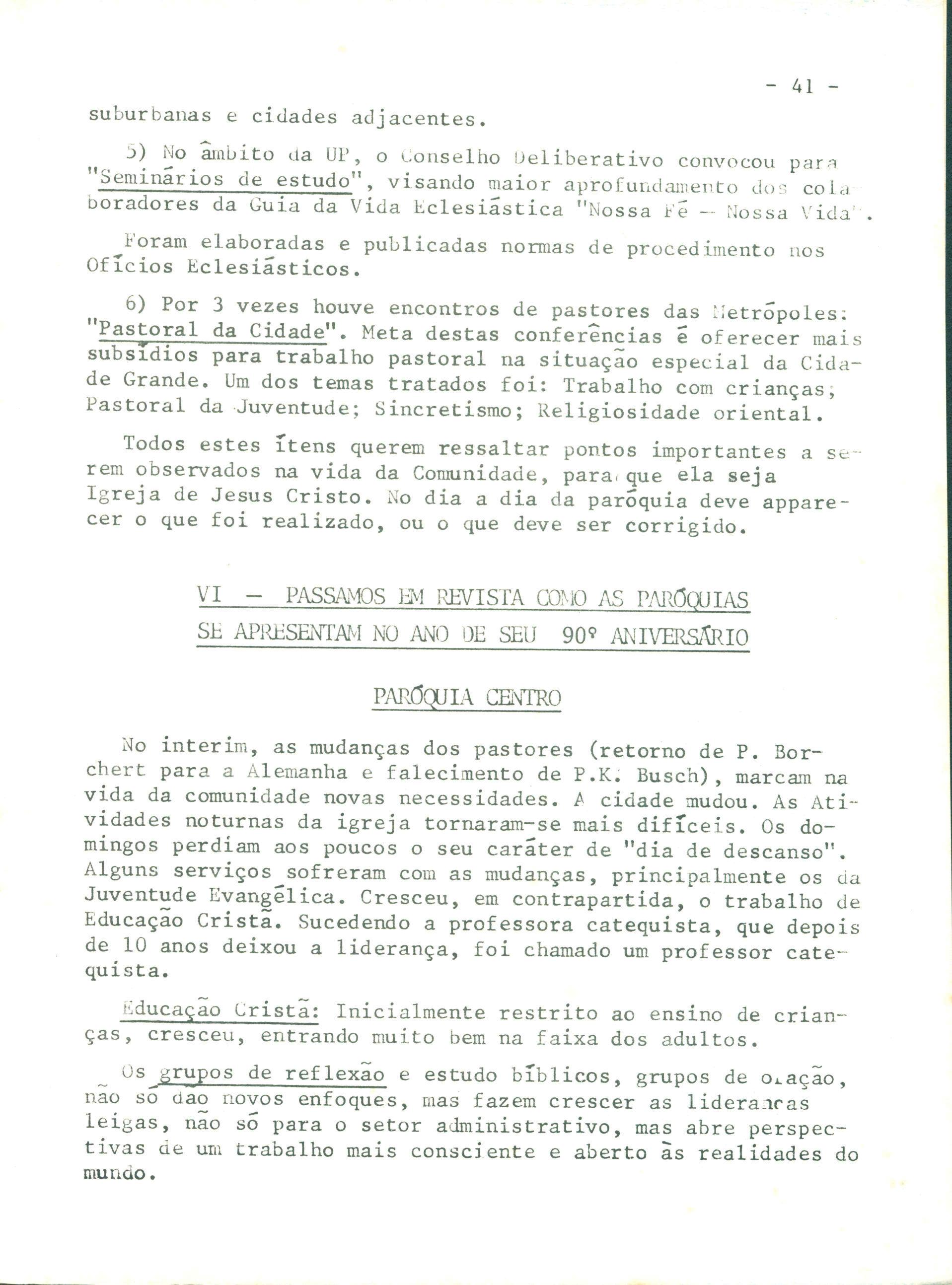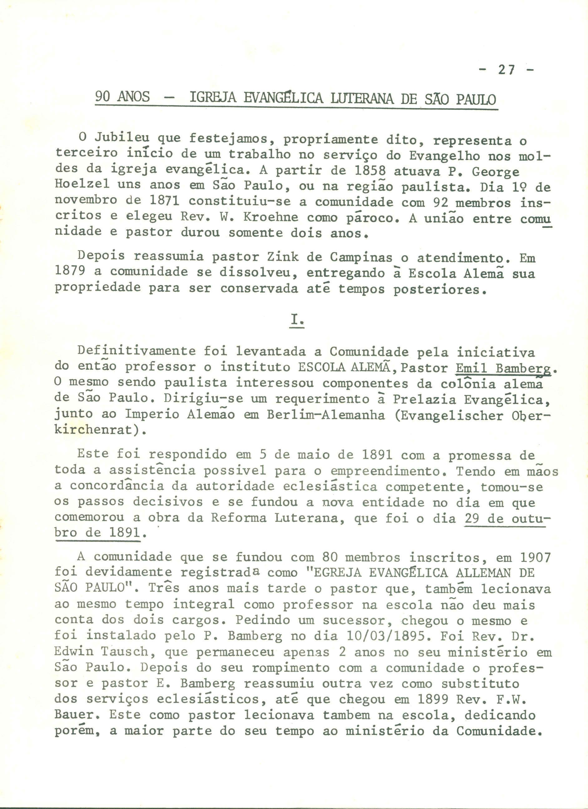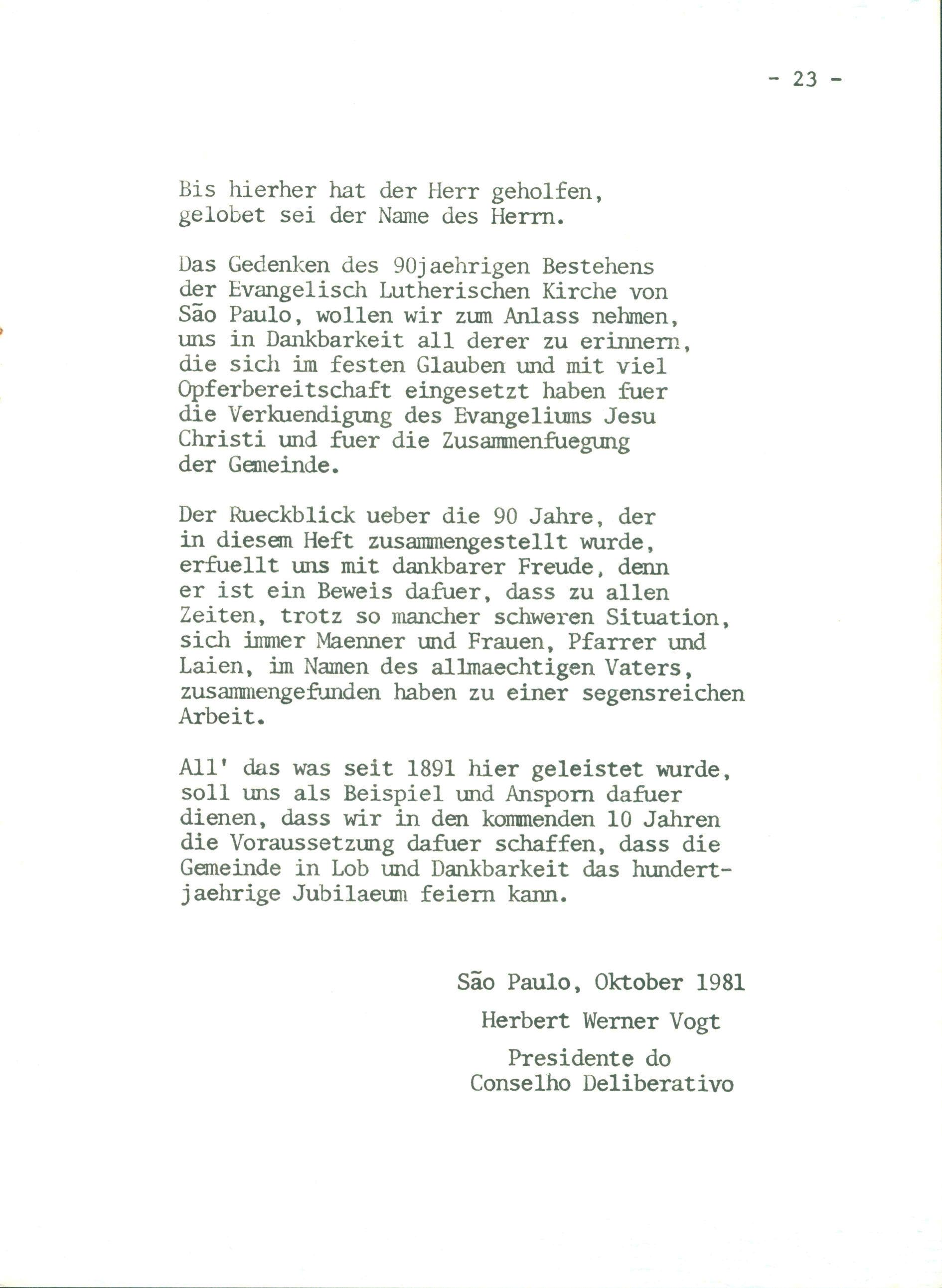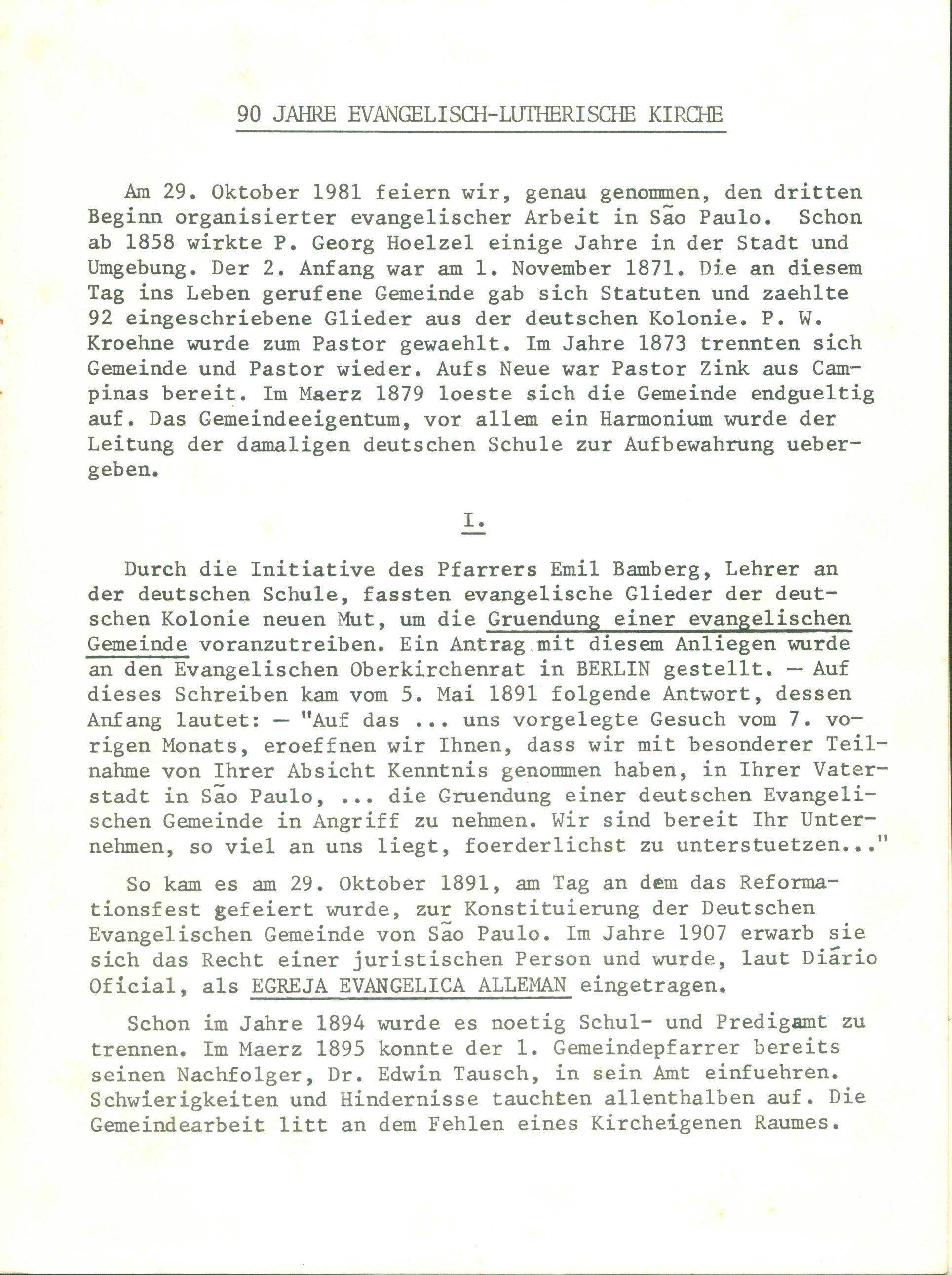 90 Anos. Fé Cristã - São Paulo -1891-1981 - IECLB