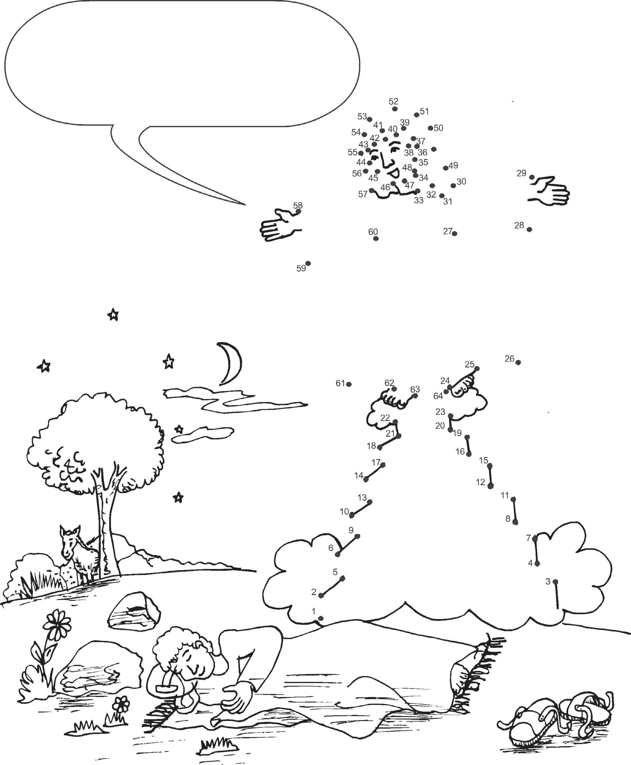 Desenvolvimento da proposta: distribua os desenhos para as crianças e peça para colorirem e recortarem, de modo que o desenho das duas crianças fique junto. Com a fita adesiva, fixe esse desenho na extremidade do palito de churrasco. Na parte superior à direita do círculo ou prato de papel, cole o desenho de Jesus. Se as crianças desejarem, podem colorir também o prato ou o círculo. Insira o palito com a imagem das crianças no corte do círculo ou prato de papelão, de forma que ele possa se movimentar da esquerda para a direita e vice-versa. Ao final, ressalte a importância de ficarmos perto de Jesus e como podemos ir ao encontro de Jesus.