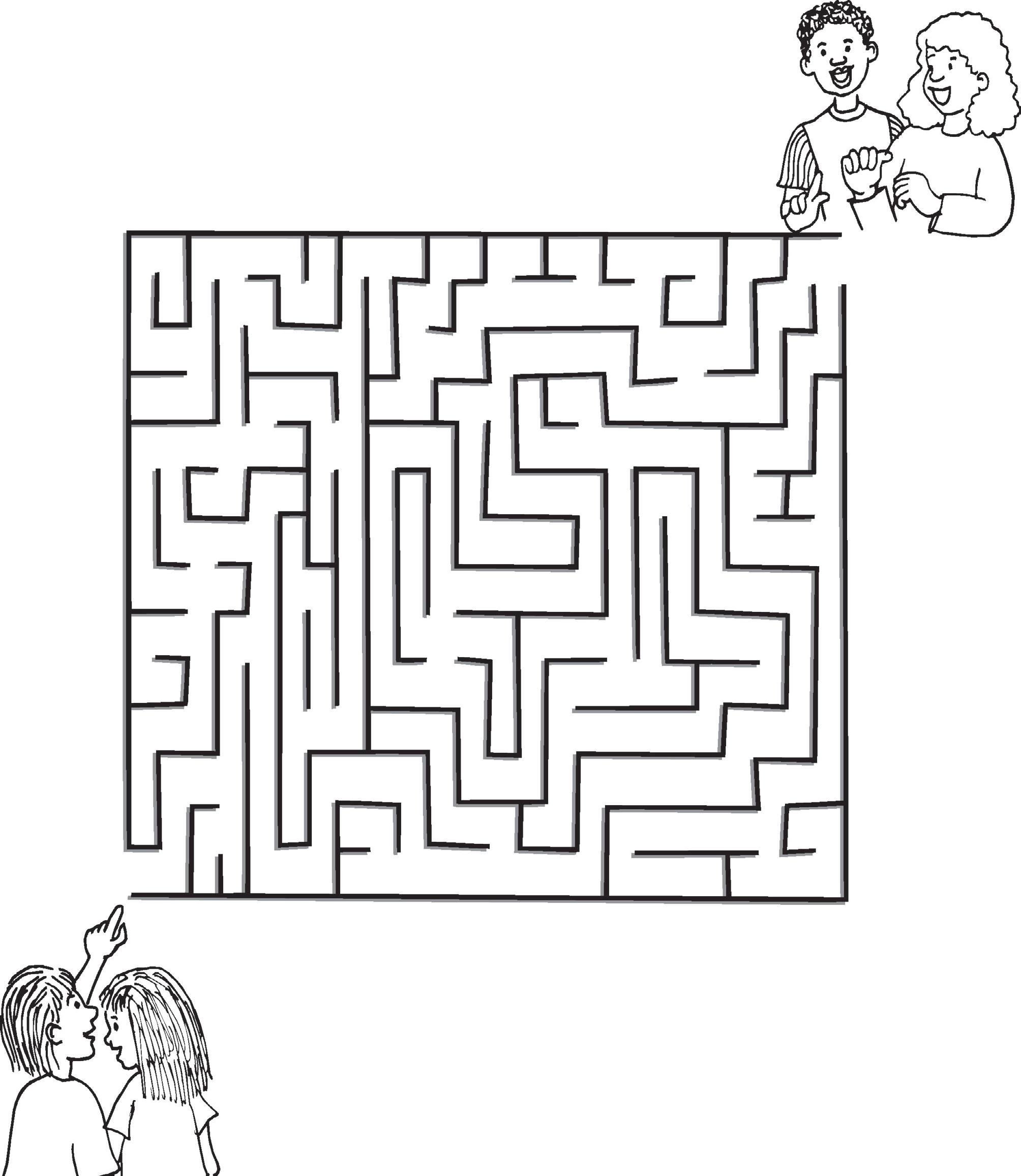 Ajude as mulheres a chegar ao túmulo de Jesus para colocar perfume no seu corpo. Desenhe, no começo do labirinto, Maria Madalena e a outra Maria. No final, desenhe o túmulo de Jesus com a pedra grande afastada e o anjo sentado nela. A seguir, indique o caminho para as mulheres chegarem até o túmulo e pinte o seu trabalho.
