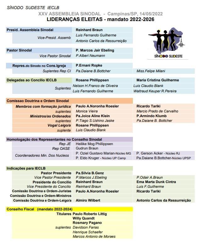 • 23/02, diretoria do Conselho Sinodal do Sínodo Sudeste