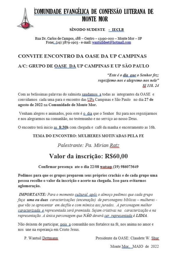 • 24/02, coordenação de comunicação do Sínodo Sudeste