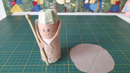 Paraatúnicadosreis,usetecidode10cmx10cm.Emcasodepapel,usepreferencialmente papeldesedaoucrepom,porseremmaismaleáveis.Essepodemedir22cmx26cm.Dobreao meio(22cmx13cm).Façatambém2dobrasdecadaladonocomprimento.Colesobreorolo, comorostoearoupajácolados.Façaacoroaeenfeitecommaterialdisponívelecole.Façaas mãoseopresente.Pinteosolhoseaboca. Paraatúnicadospastores,recortetecidoou jutade16cmx9cm.Secolocaratúnica sobreacabeça,comoMariaeJosé,amedida podeserde14cmx22cm.Façaocajado compalitodechurrasco,canelaempauou galhoseco.Façaasmãosecole-asnocorpo.