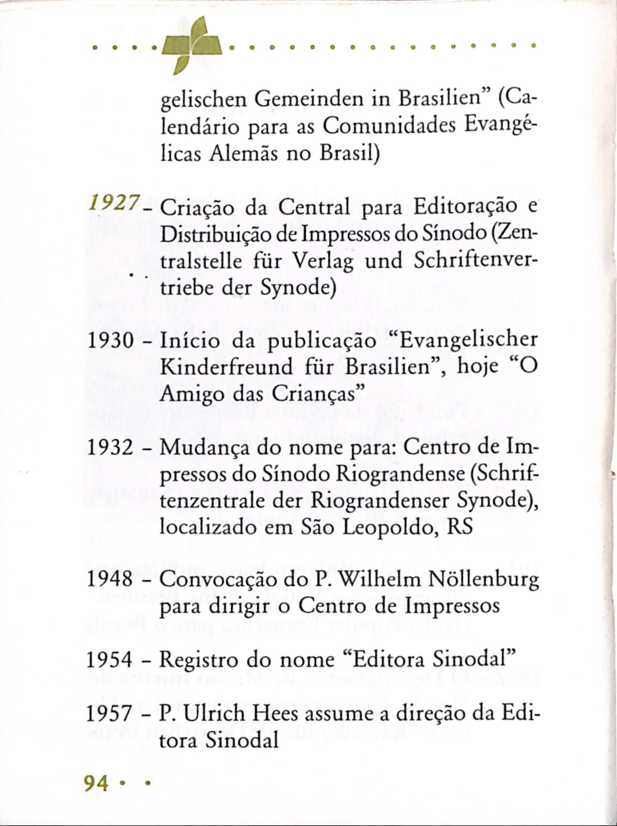 1932 - Mudança do nome para: Centro de Im pressos do Sínodo Riograndense(Schriftenzentrale der Riograndenser Synode), localizado em São Leopoldo, RS