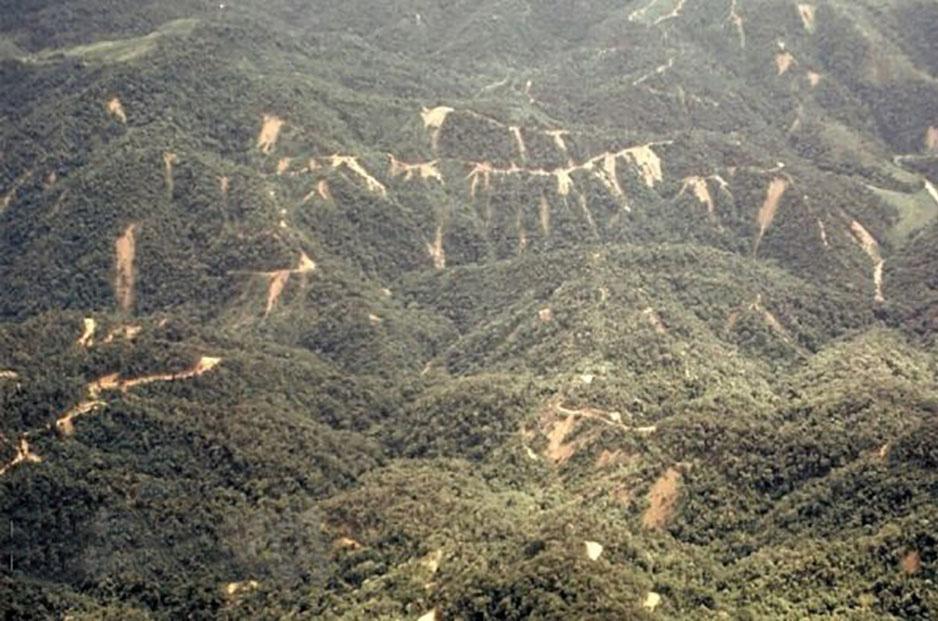 O rasgar de estradas para exploração madeireira causou uma das maiores erosões de que se tem notícia no vale. Deslizamentos de terra medindo mais de 100 m de largura por mais de 150 m de profundidade não eram raros. Um eventual caminhão nessa foto mal passaria de um ponto na paisagem.
