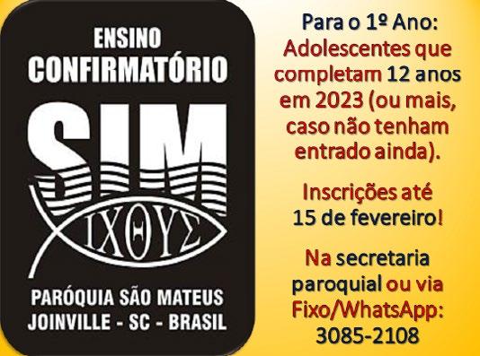 • ENSINO CONFIRMATÓRIO: DIÁLOGO COM PAIS E MÃES – QUINTA-FEIRA (23/02), 1º ANO - 19H; 2º ANO