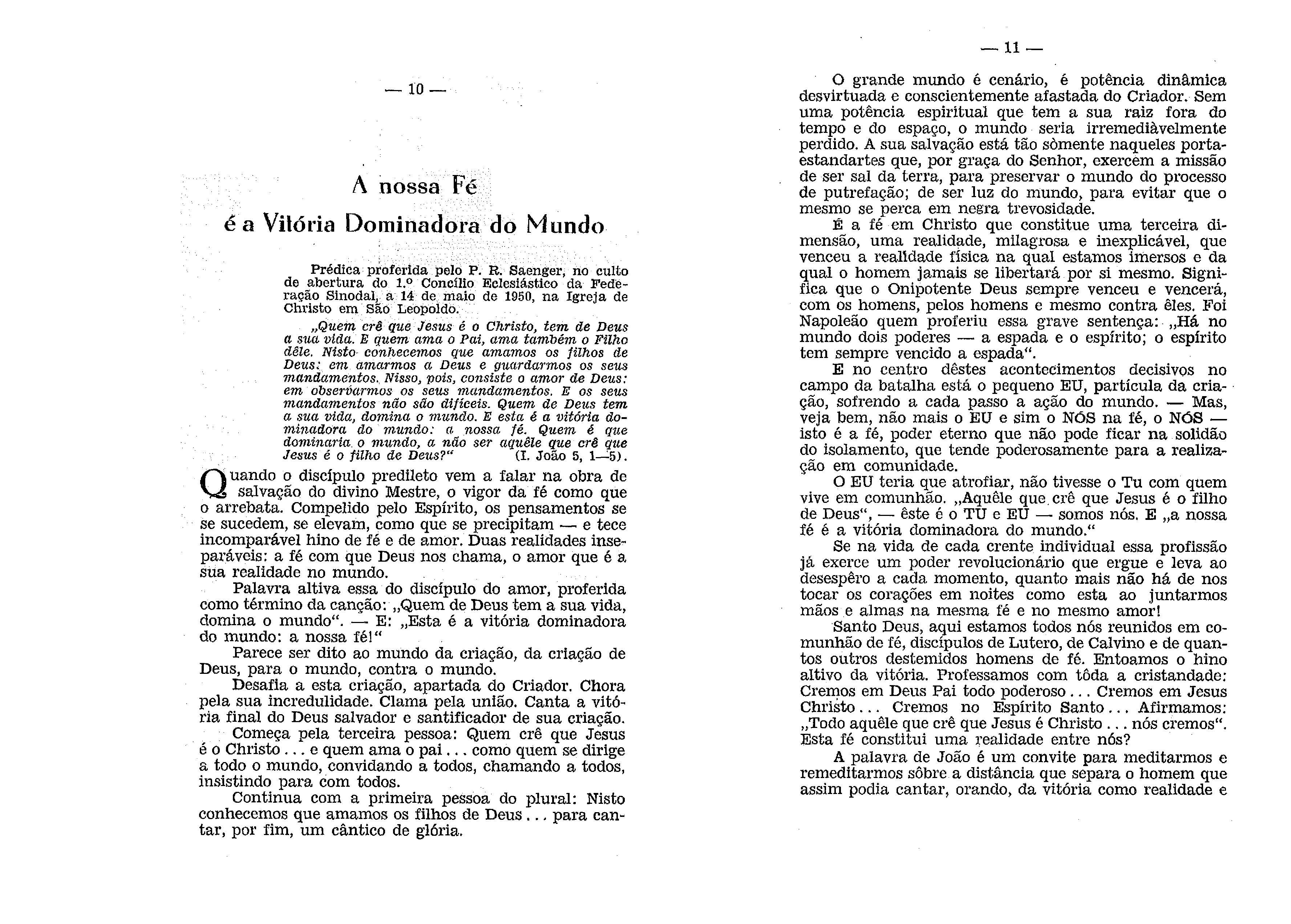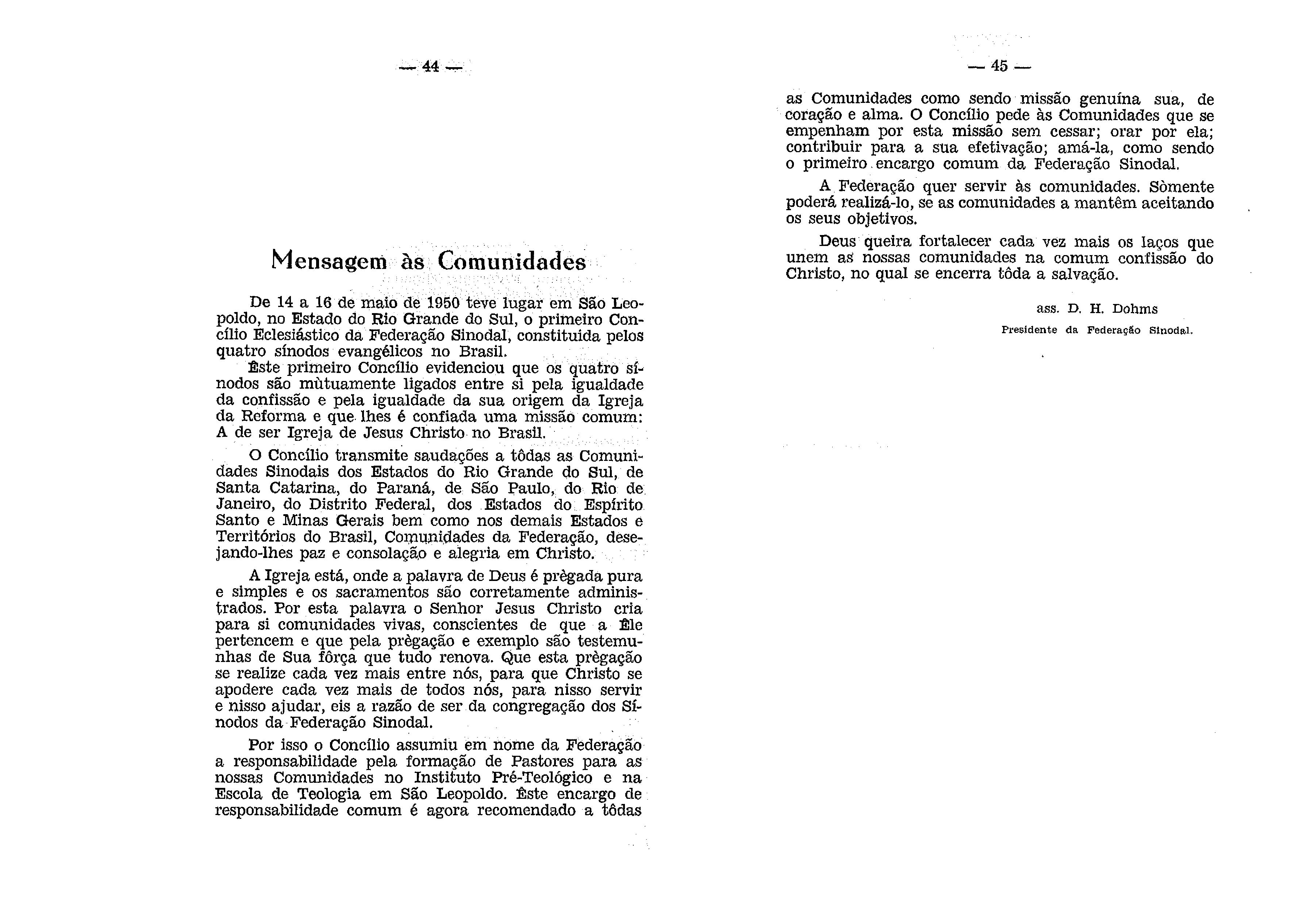 Primeiro Concílio Eclesiástico da Federação Sinodal 14-16 de maio de 1950