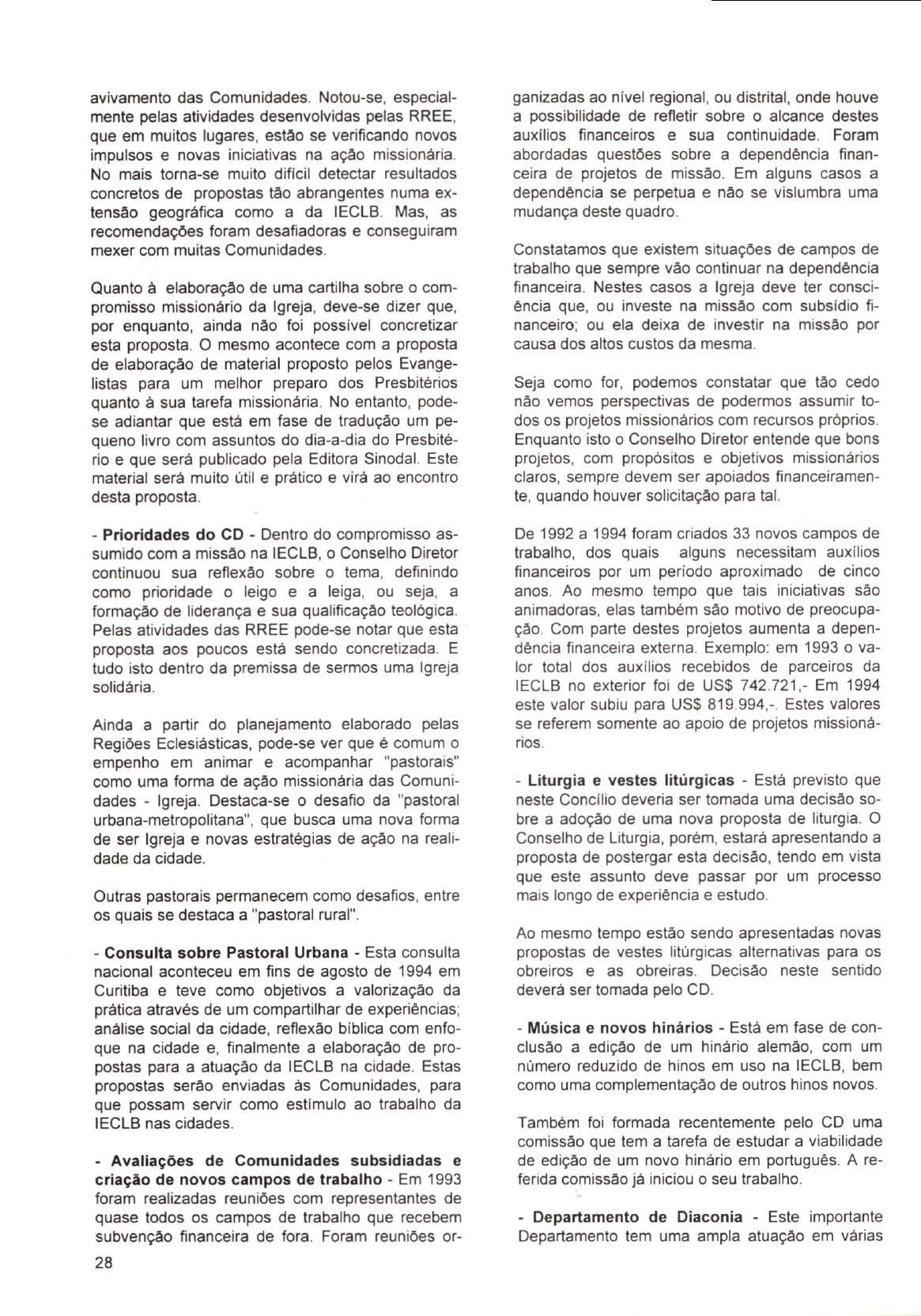 Relatório da Presidência - Pastor Gottfried Brakemeier - Concílio IECLB - Cachoeira do Sul-RS - 1994