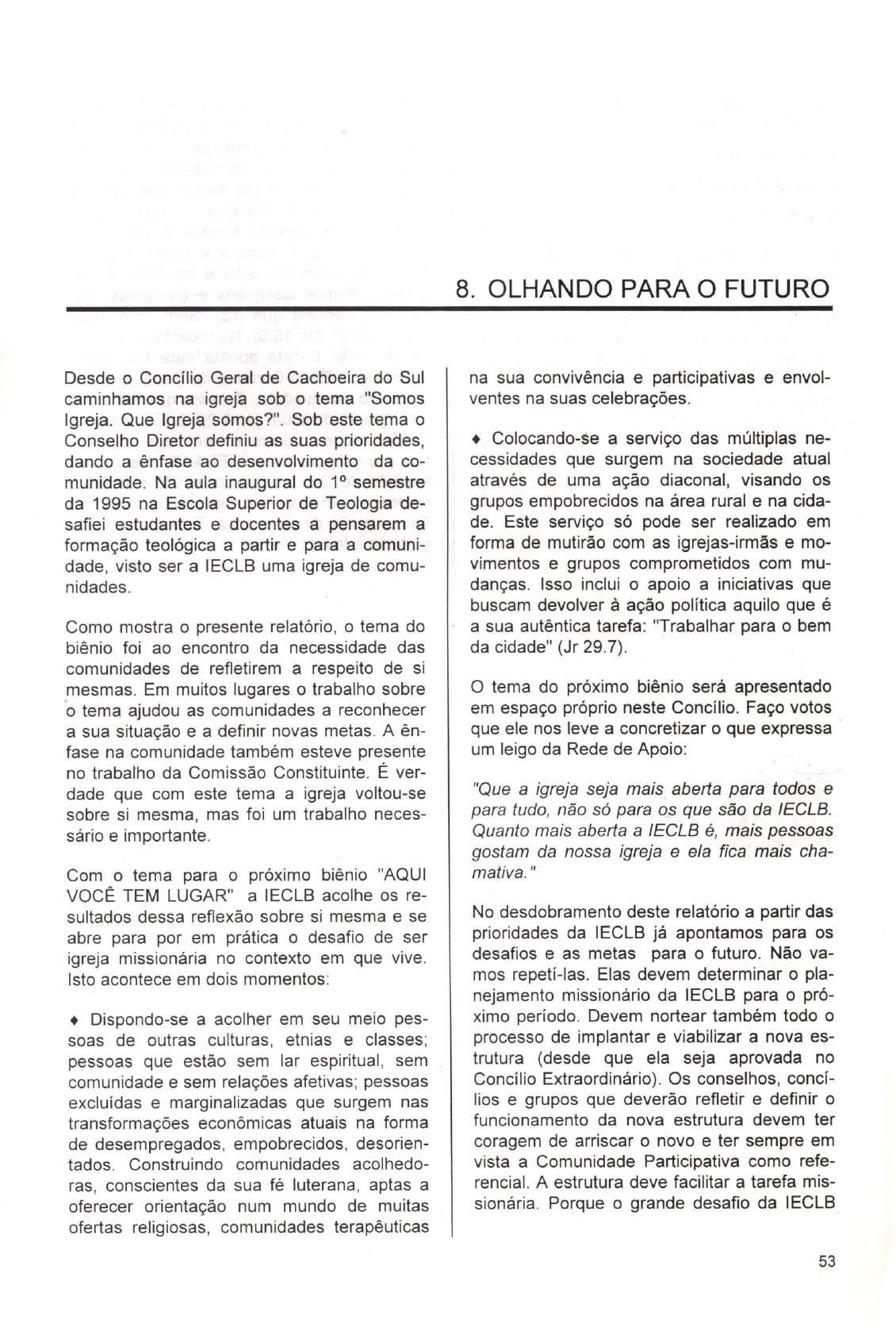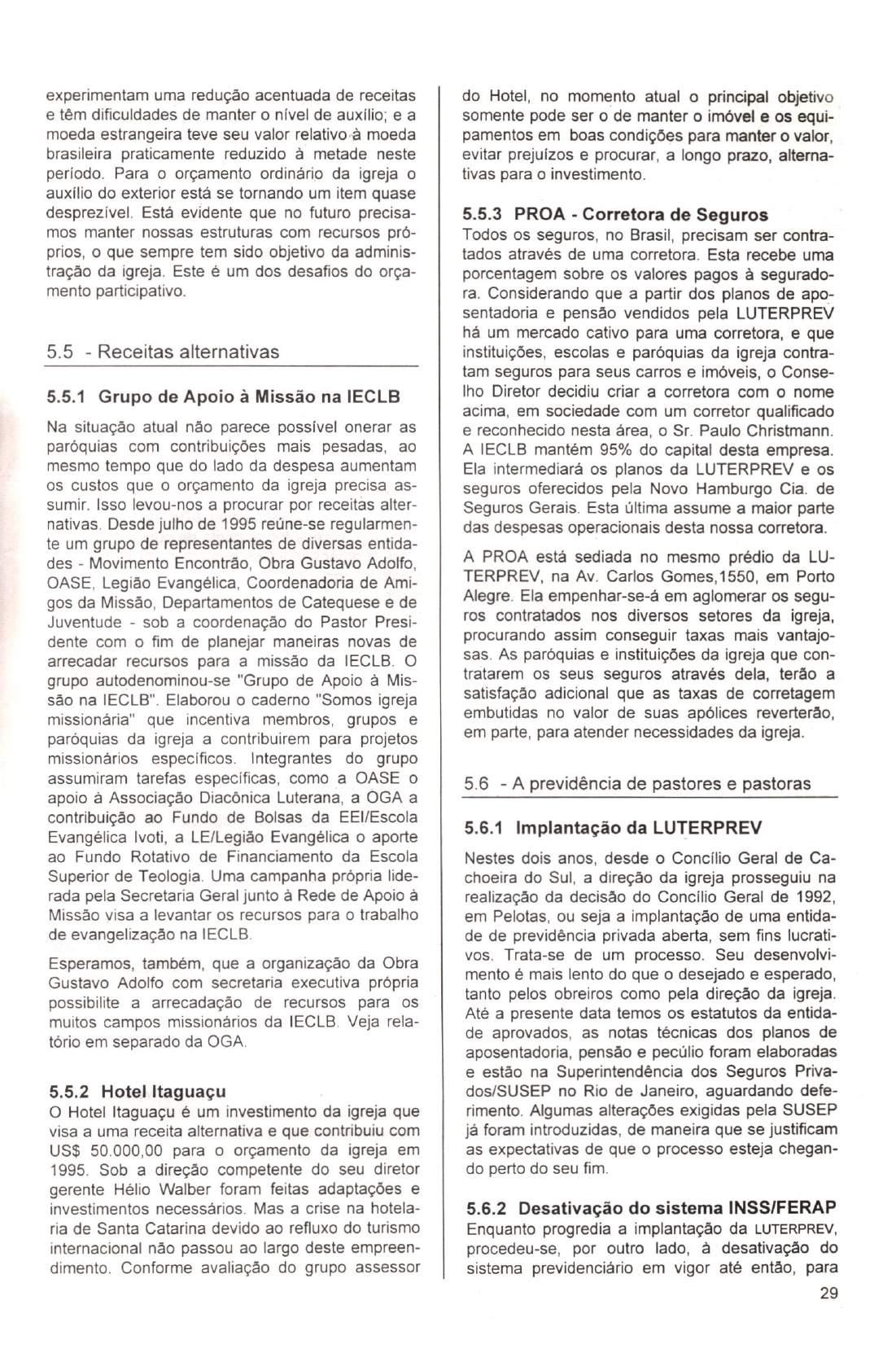 Relatório do Pastor Presidente Huberto Kirchheim - Concílio da IECLB - Toledo-PR - 1996