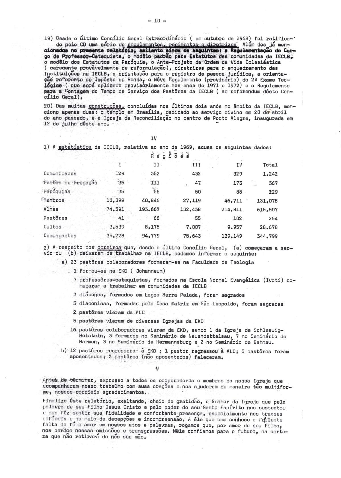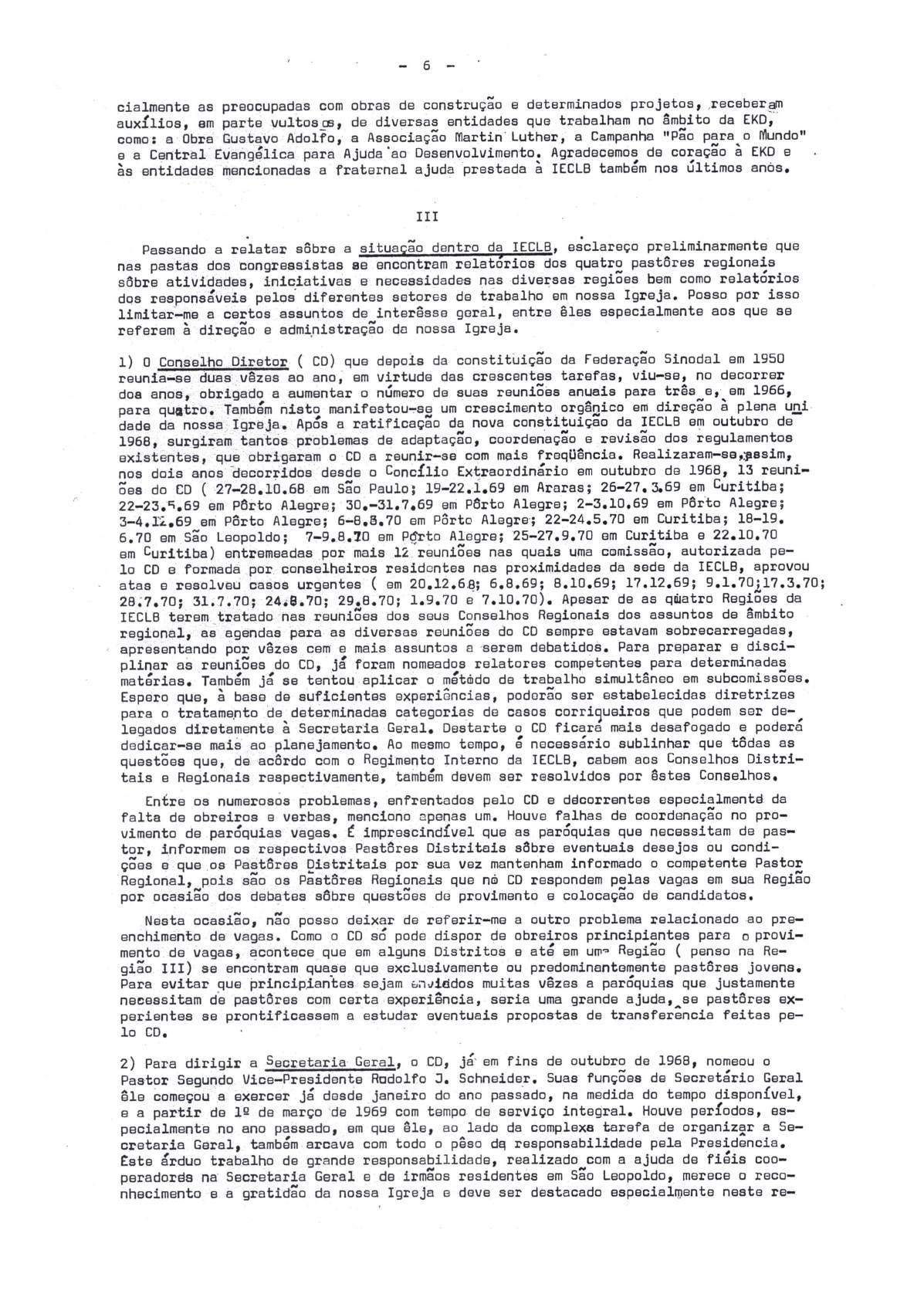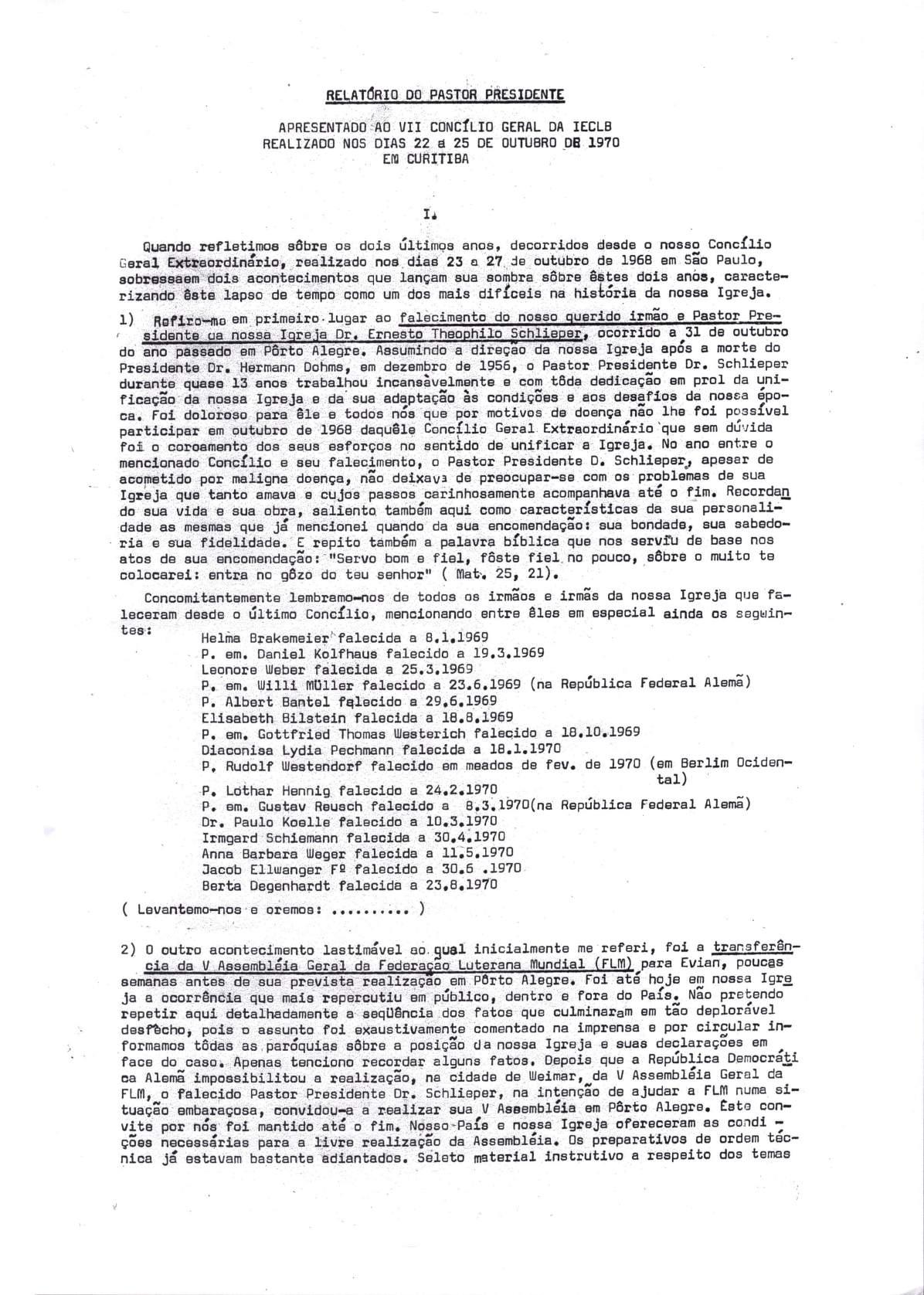 Relatório do Pastor Presidente Karl Gottschald - Concílio de Curitiba 1970