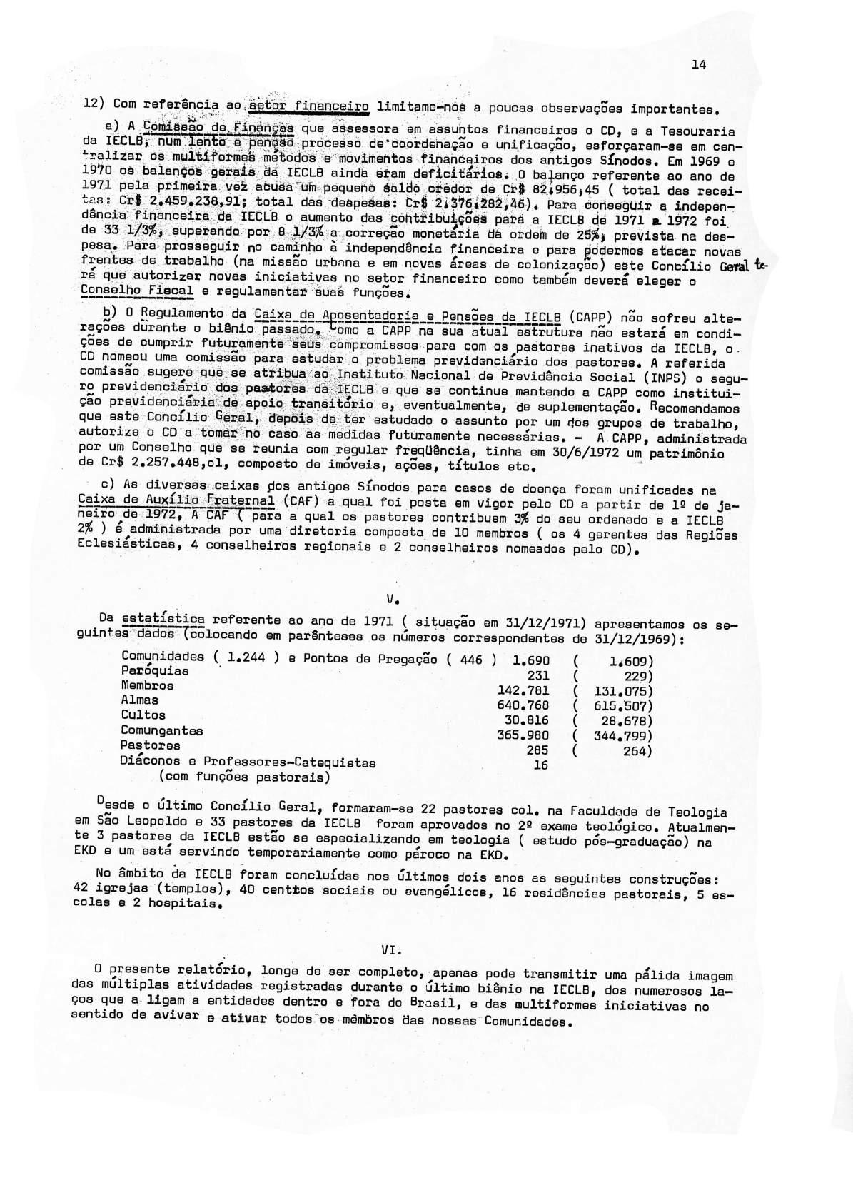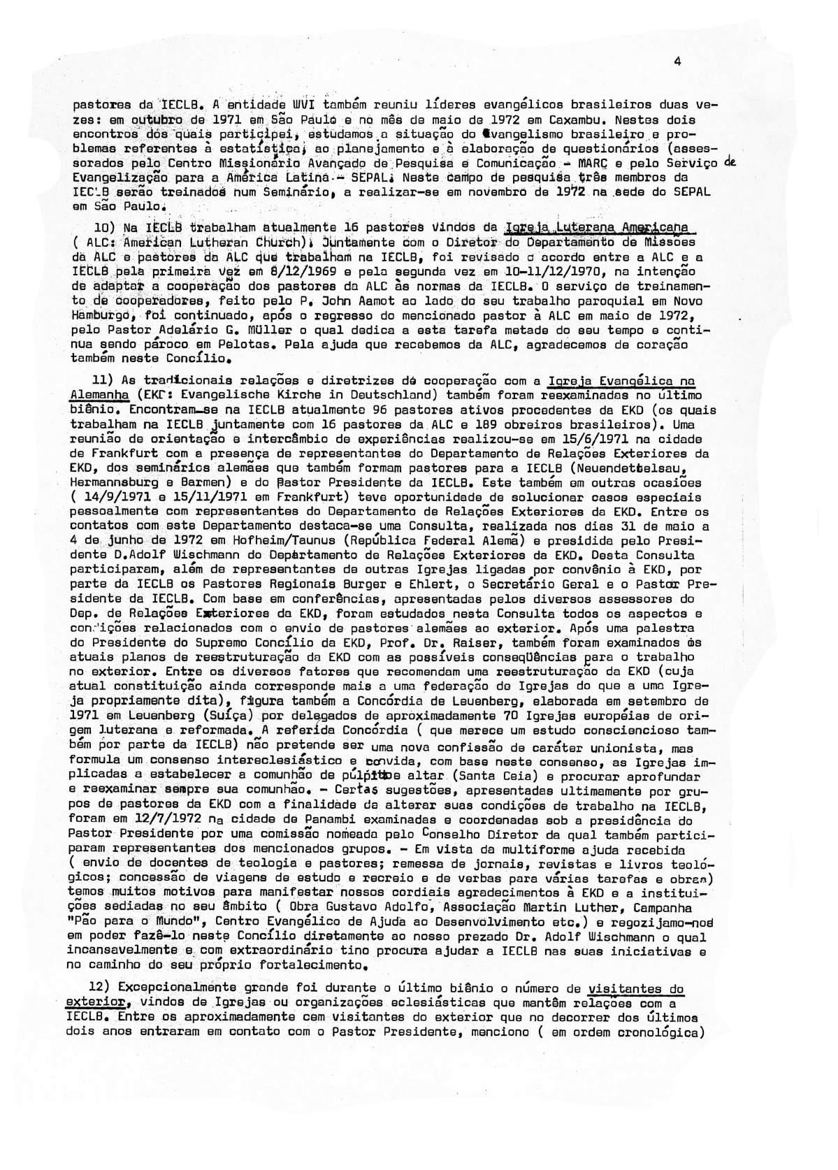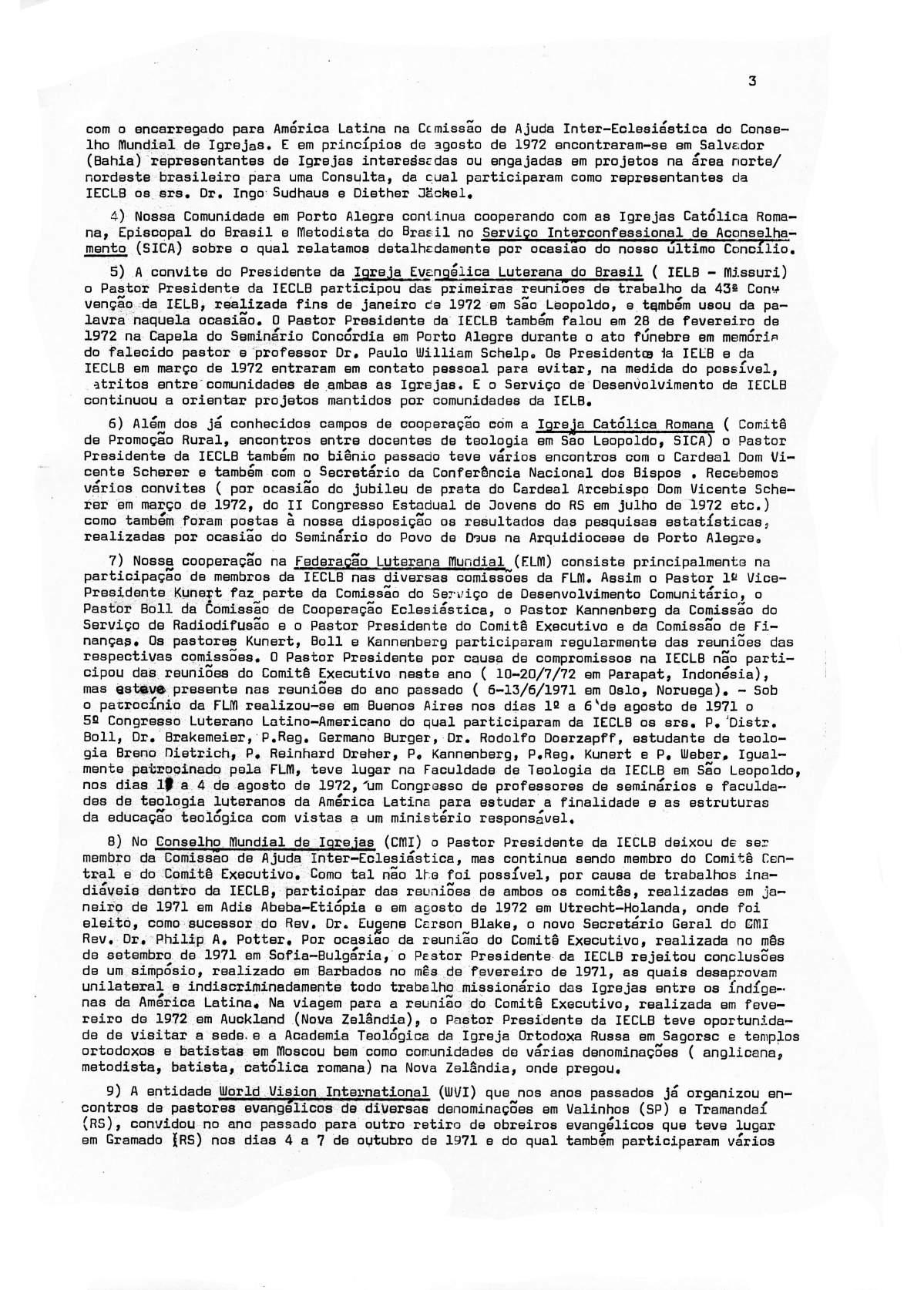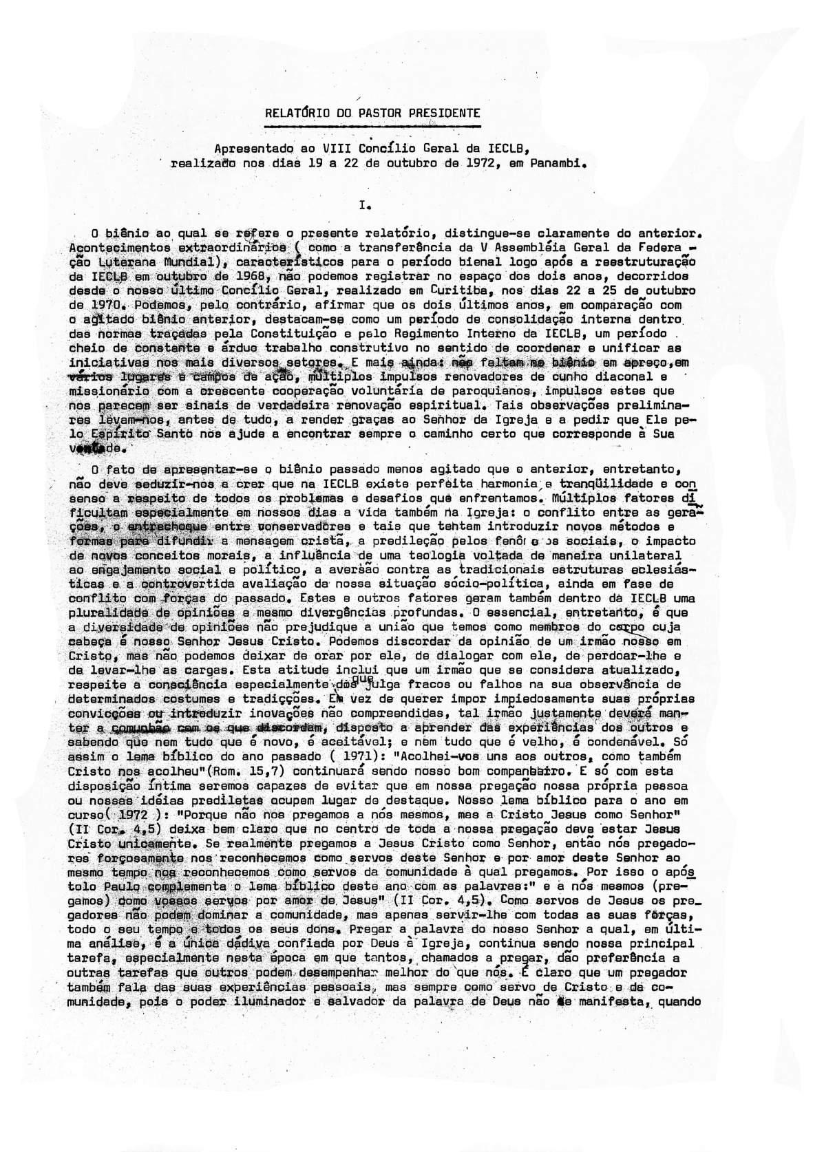 Relatório do Pastor Presidente Karl Gottschald - Concílio Geral da IECLB - Panambi/RS - 1972