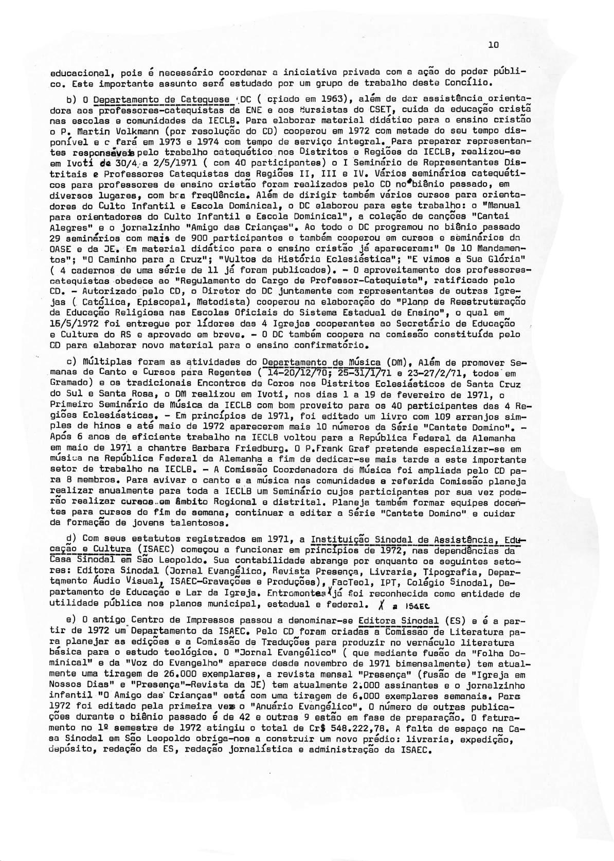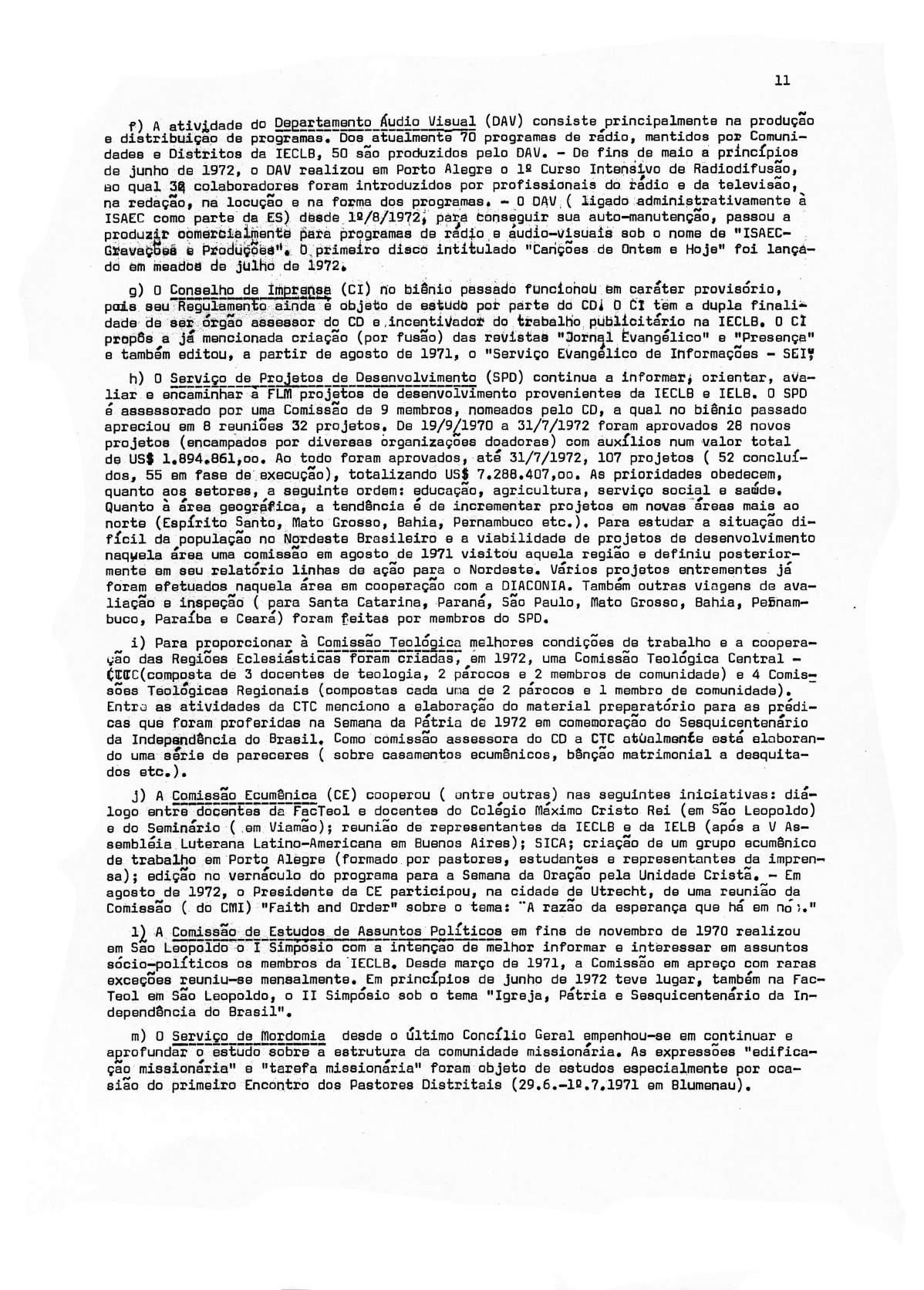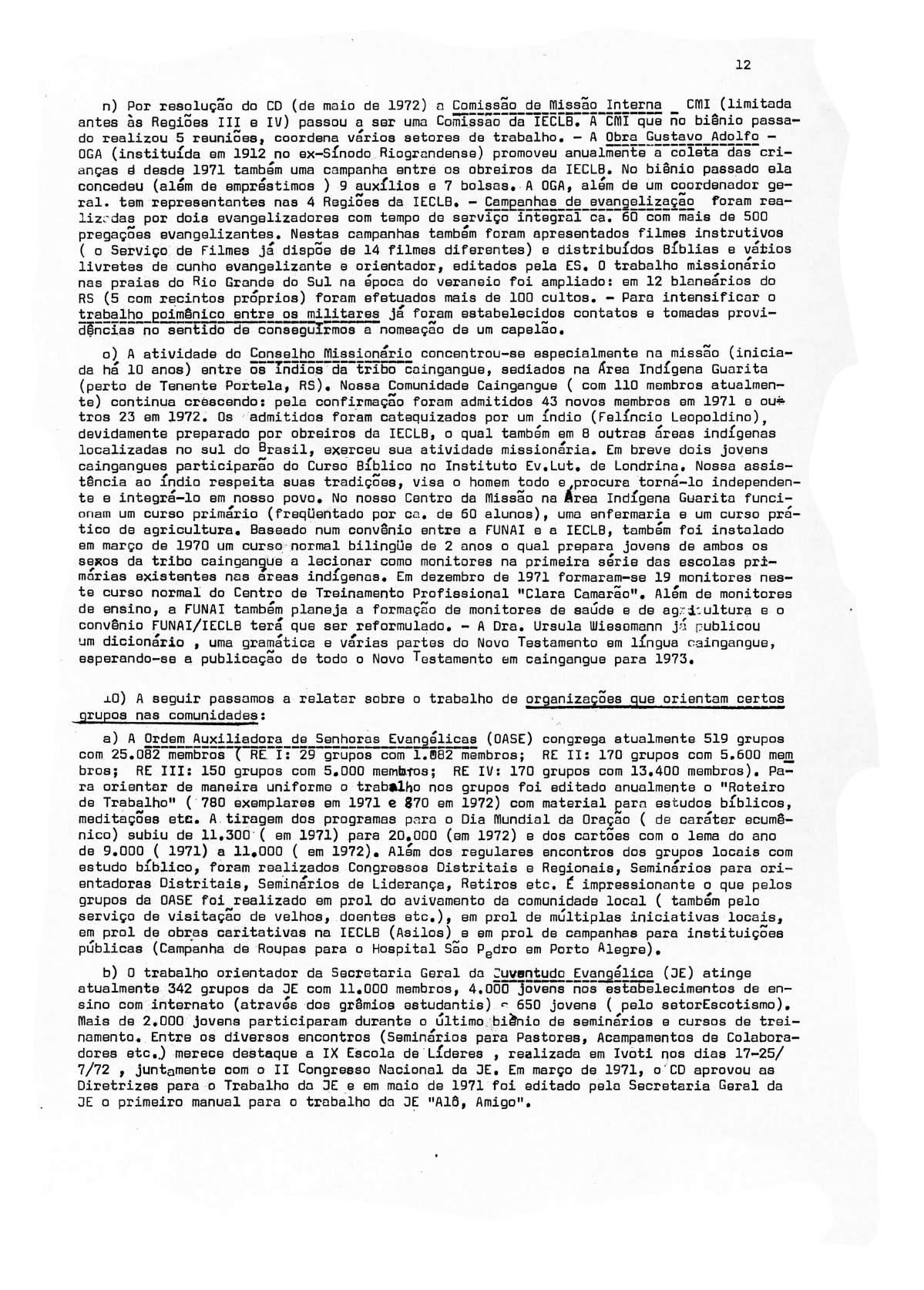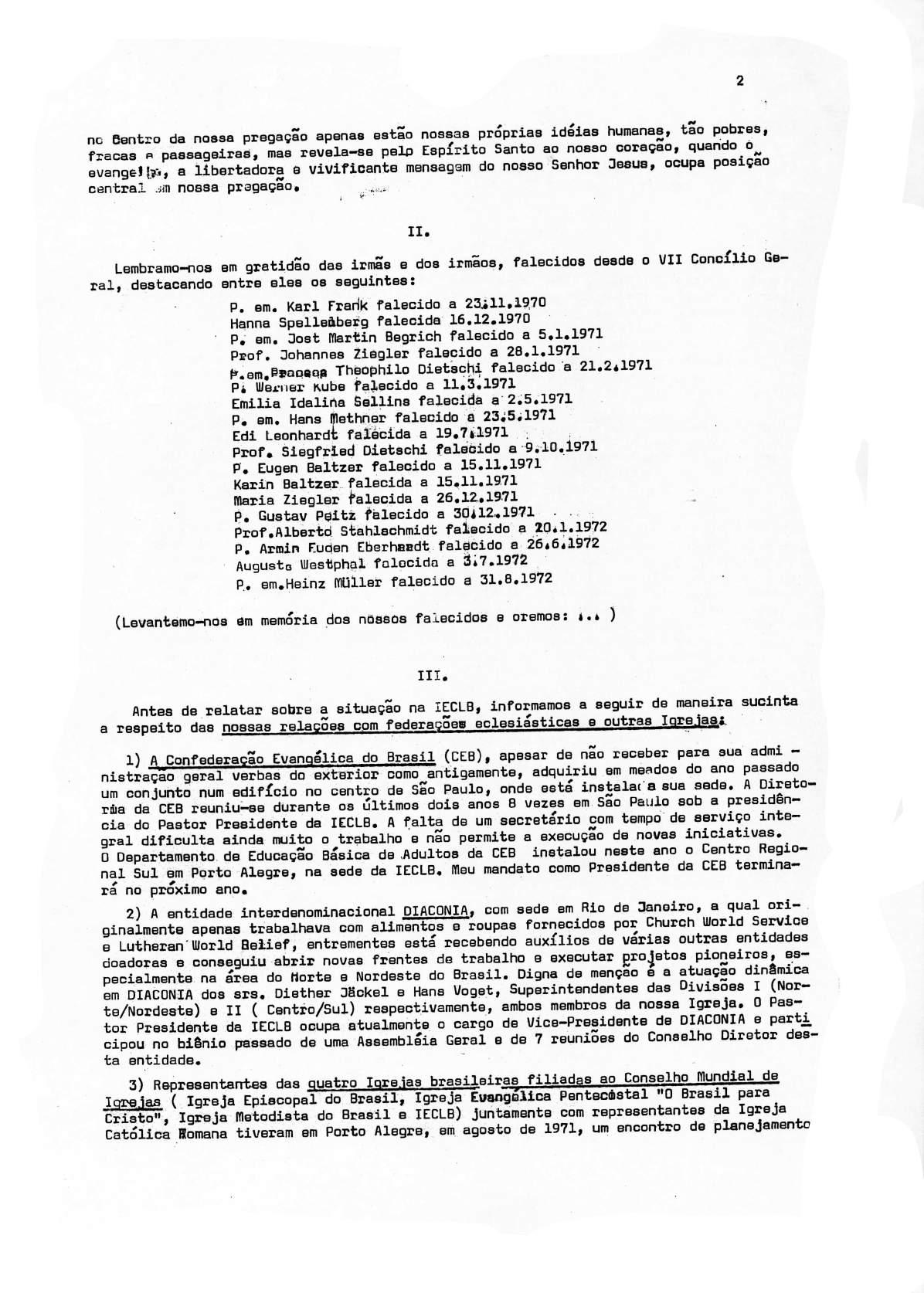 Relatório do Pastor Presidente Karl Gottschald - Concílio Geral da IECLB - Panambi/RS - 1972