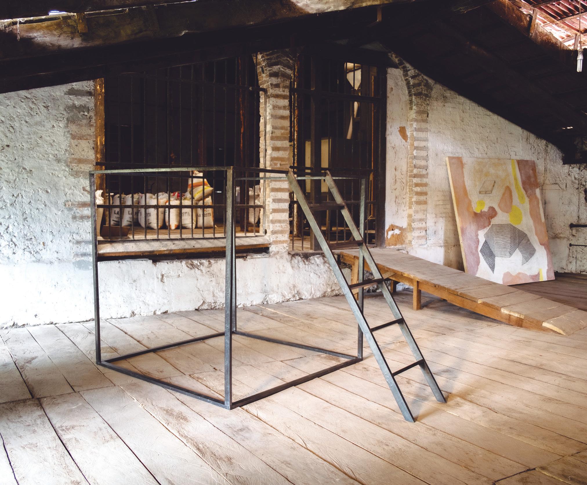 El museo, un antiguo beneficio de café construido a fines del siglo XIX, que conoció mejores épocas, posee su propio temperamento, un gran ca rácter, un genio peculiar y expresivo. Grandes espacios en distintos niveles y entreniveles, óxido y maderas envejeci das, carencia de luz eléctrica, máquinas y aparatos deteriorados por el uso, el tiempo y un virtual abandono configu ran un aspecto inusual con cierto tono postapocalíptico o distópico. Velázquez lo aprovecha y, en este sentido, para el ojo el artista el espacio de por sí ar quitectónico pasa a ser una suerte de objeto encontrado, de arquitectura rea signada o resignificada. Efectivamente, hay una familiaridad, si no un parentes co, entre las texturas del espacio y las que suelen incluir las obras de aquél.