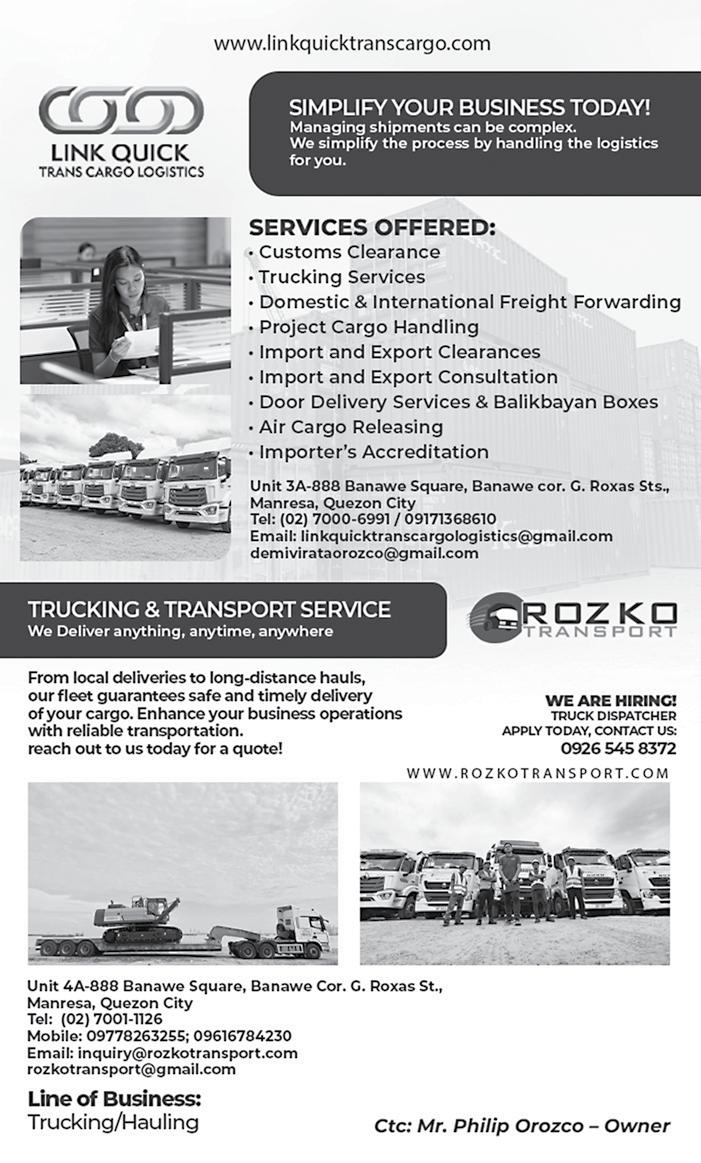 “Our work is about more than just revenue—it is about making a tangible difference in the lives of the Filipino people. In line with President Marcos’ directive to ensure the efficient and sustained collection of government revenues, every peso collected supports programs that uplift communities and strengthen our nation. Through innovation, strict enforcement, and transparency, the BOC continues to support the President’s vision for a stronger, more selfreliant Philippines, and we remain committed to serving the people with integrity and dedication every day,” said Commissioner Nepomuceno.