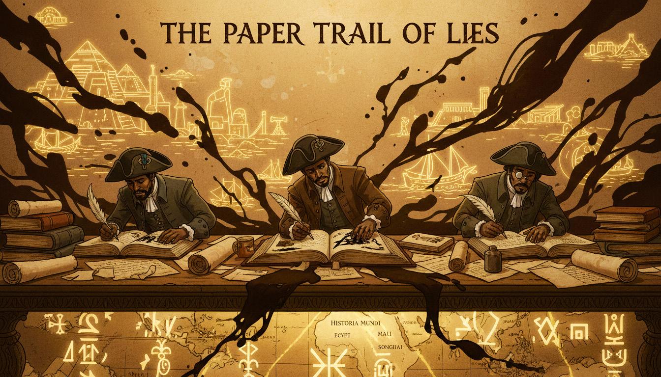 Their version of history is inside out, upside down, backwards, and twisted. They called themselves discoverers while erasing civilizations older than their empires. They claimed to bring light while extinguishing ancestral wisdom. From Turtle Island to Wagadou, the colonizers rewrote origin stories to justify theft, domination, and spiritual replacement. They flipped the script—turning resistance into savagery, turning genocide into progress. Their textbooks are mirrors that distort, not reflect. But the truth remains: we were builders, navigators, philosophers, and healers long before their ships arrived.