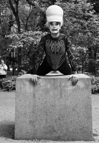 For Gibson, an important goal of this project is to foreground the local, multi-tribal Indigenous, BIPOC, and LGBTQ+ communities, many of whom will be featured in black-and-white portraits taken earlier this year on top of the empty monument pedestals in the Park Blocks. The choice to engage with the empty monument pedestals was purposeful; pedestals are meant to venerate and honor. By placing