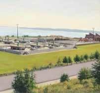 Stonington Shorefront by Scott Moore, oil, 24” x 48”