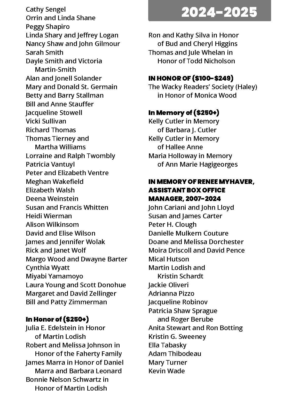 Subscribers are the Backbone of Our Organization Providing ongoing support for the theater both within our community as well as financially.