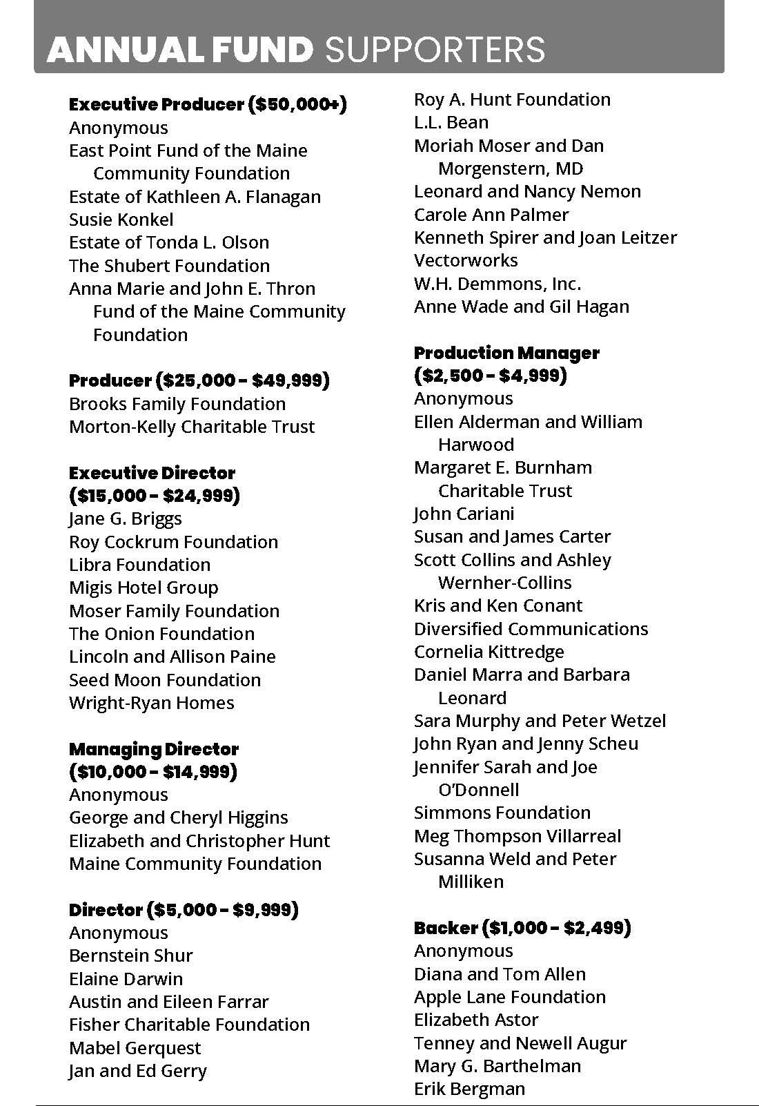 Because each contribution is an investment in the arts. Tax-deductible contributions keep Portland Stage a living, breathing, thriving theater, and ultimately ensure the fulfillment of our mission and the enrichment of our community. The generosity of individual donors, corporations, and foundations enables us to surround the work on our Mainstage with Education Programs, New Work Development Initiatives, and Community Engagement Events that deepen and broaden the impact of the shows themselves.