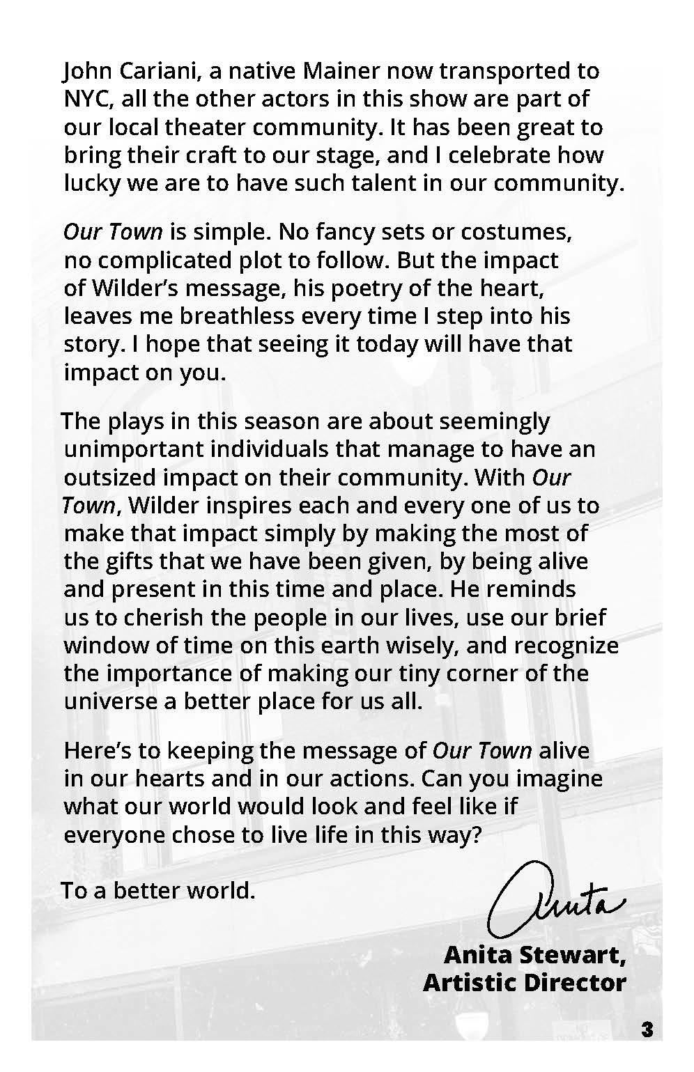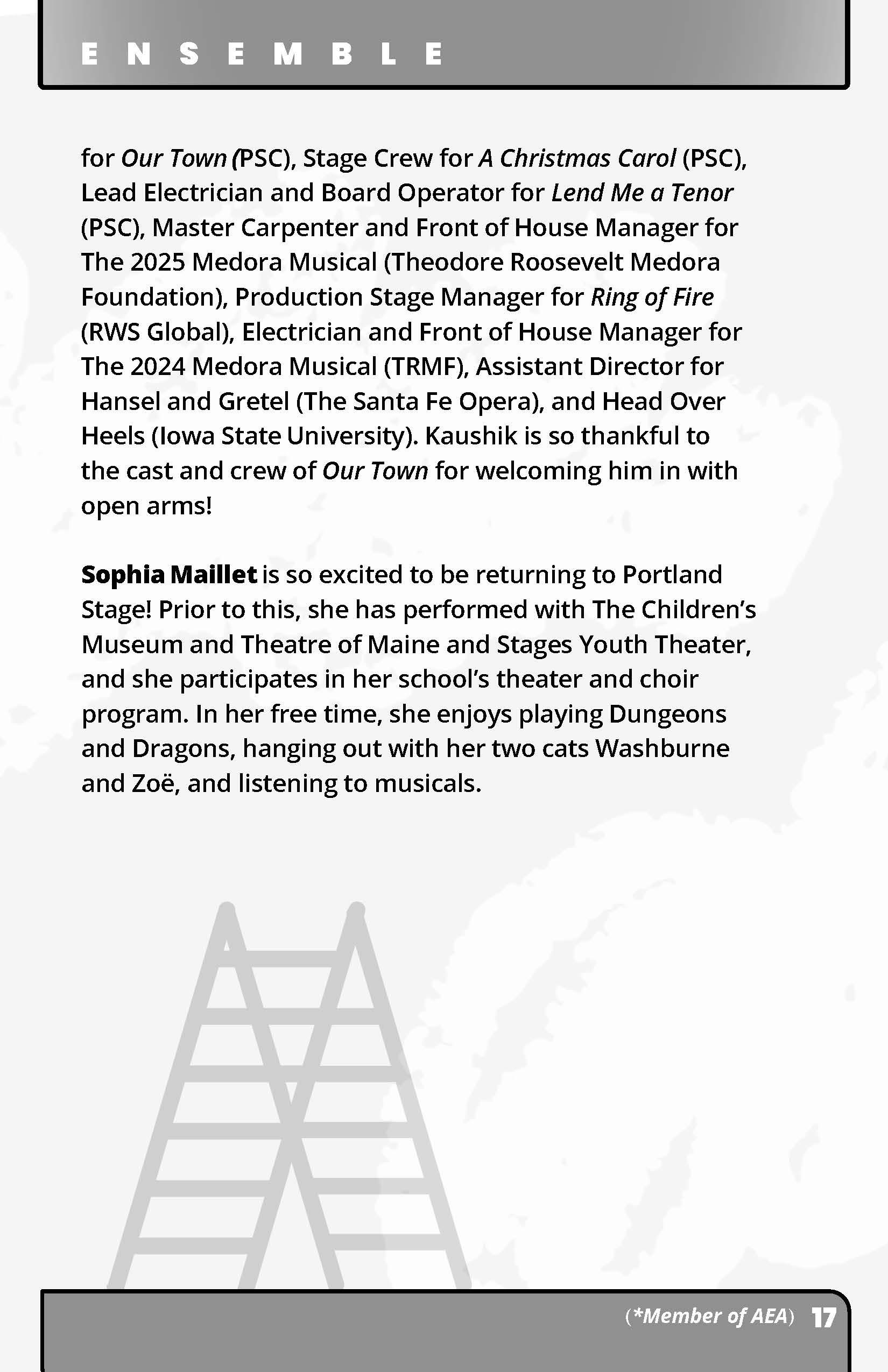 •Build community: We create productions from the ground up, combining local talent with artists from away: enriching both through lasting relationships and deeper understanding of each other and the world.