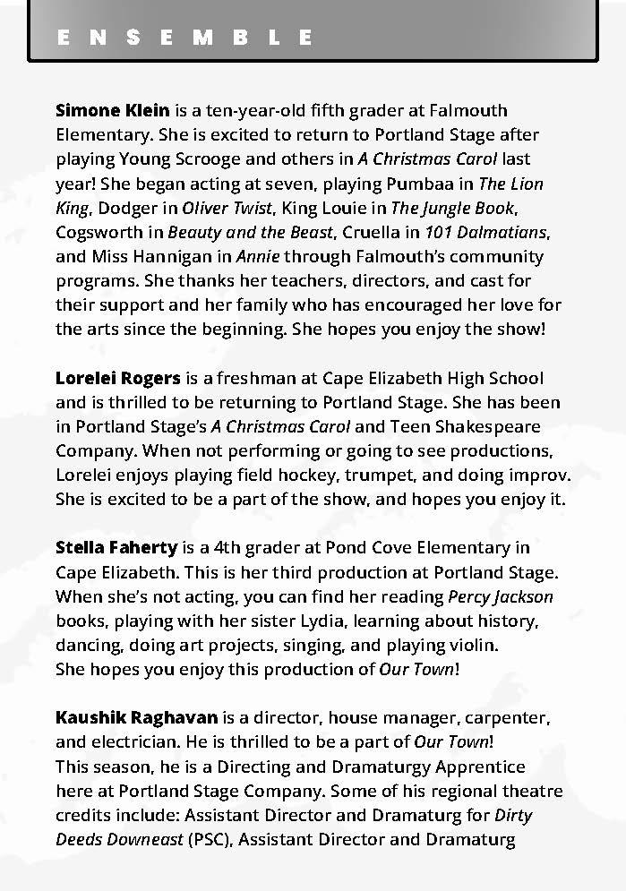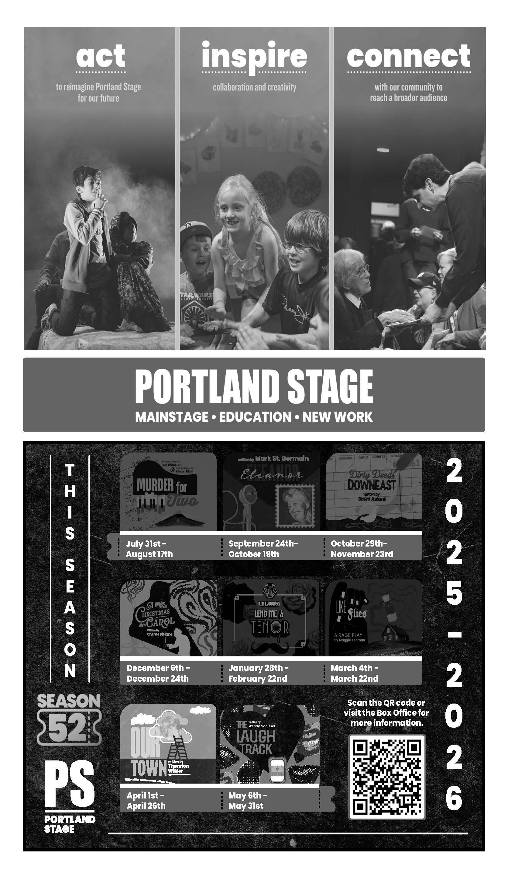 Portland Stage is committed to creating great art, passionate about using the theater to educate, and dedicated to enriching our community. WE: