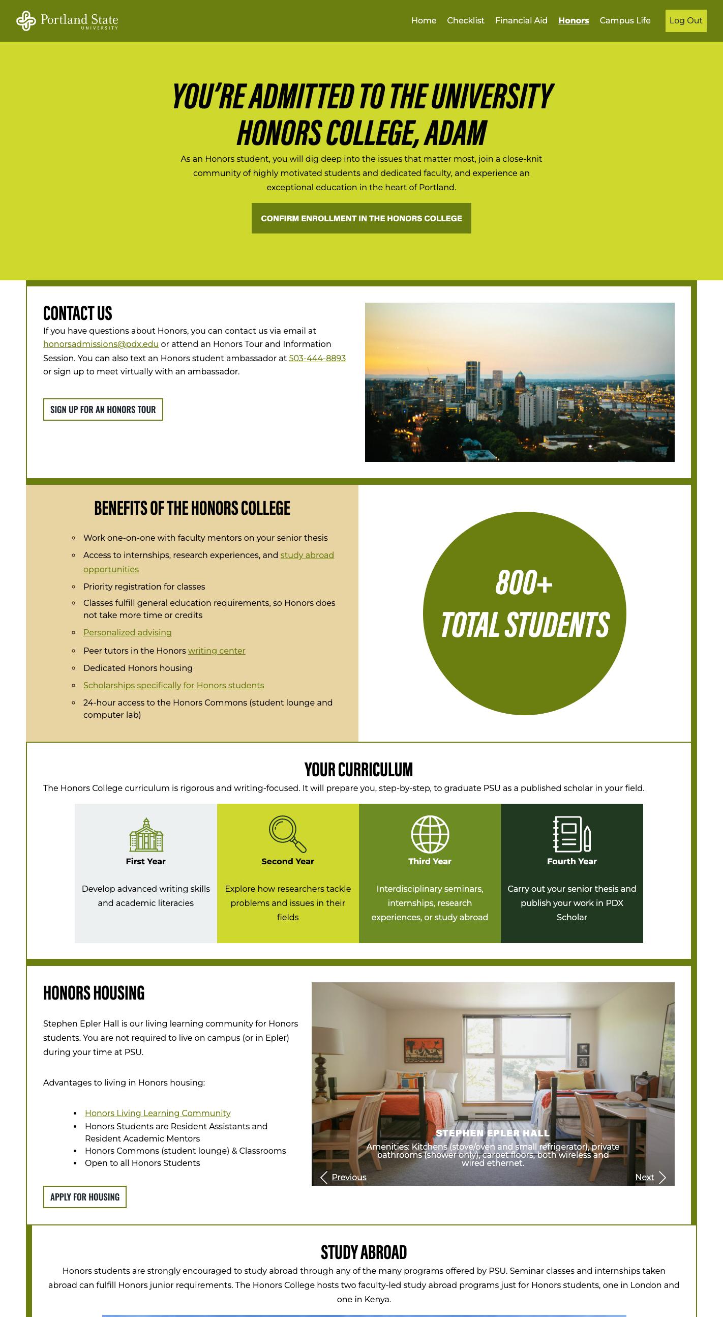 Stephen Epler Hall is our living learning community for Honors students. Students are not required to live in Epler or on campus, but it is a great way to build community, stay connected with Honors students, and explore downtown Portland. Two floors of Epler Hall are reserved for first year Honors students.