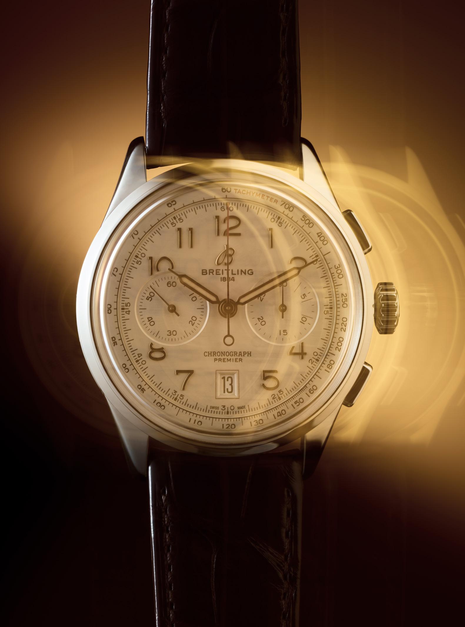 Keeping alive the vision of three successive generations – Léon, Gaston and Willy Breitling – the ‘pilot’s pilot-watchmaker’ of La Chaux-de-Fonds, Breitling has with the Premier Chronograph embodied not only a formidable legacy as inventor of the modern ‘chronograph’, but also its lessknown duties dressing Civvy Street as well as cockpits and their occupants. As Willy Breitling insisted, the Premier was an “unmistakable stamp of impeccable taste”, launched in the ’40s as horological, sartorial respite from the wages of war proving so wearisome for gentlemen at the time. And regardless of demeanour today, let alone the rose-tinted looks, the stopwatch mechanics ying within remain the best of the best.