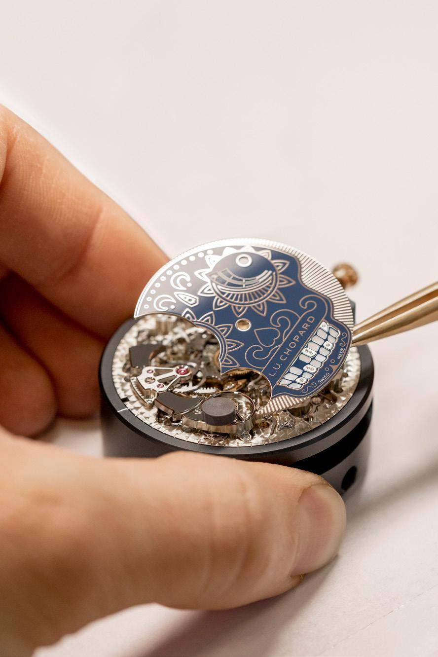 Needless to say, hand-assembly is a suitably agonising undertaking for each movement’s dedicated watchmaker. Not least ne-tuning the ‘governor’ ywheel revealed on the Calavera’s right cheek, whose air-resistance acts as metronome to the cadence of the crystal gongs’ melody, in C# and F. Watchmaker as orchestral conductor – measuring our time on earth, just as the Mexicans do every November 2nd.