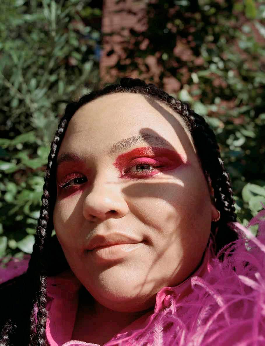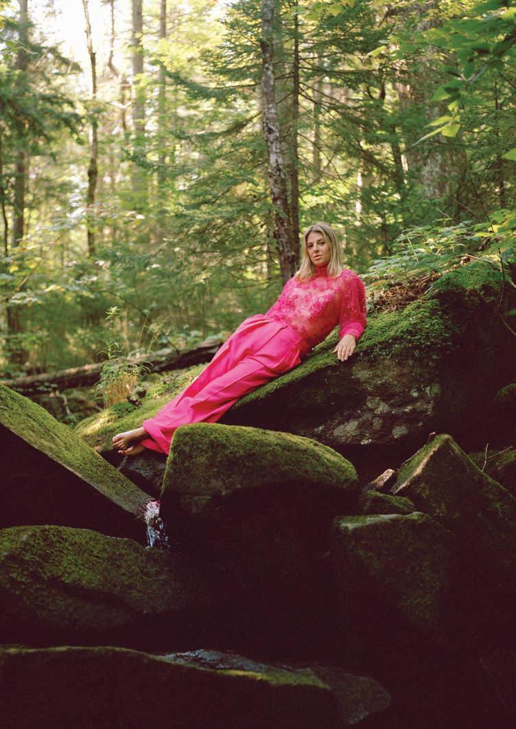 Torrey Peters, photographed in Vermont by Eric Chakeen, wears VALENTINO PINK PP FALL/WINTER 22-23 COLLECTION