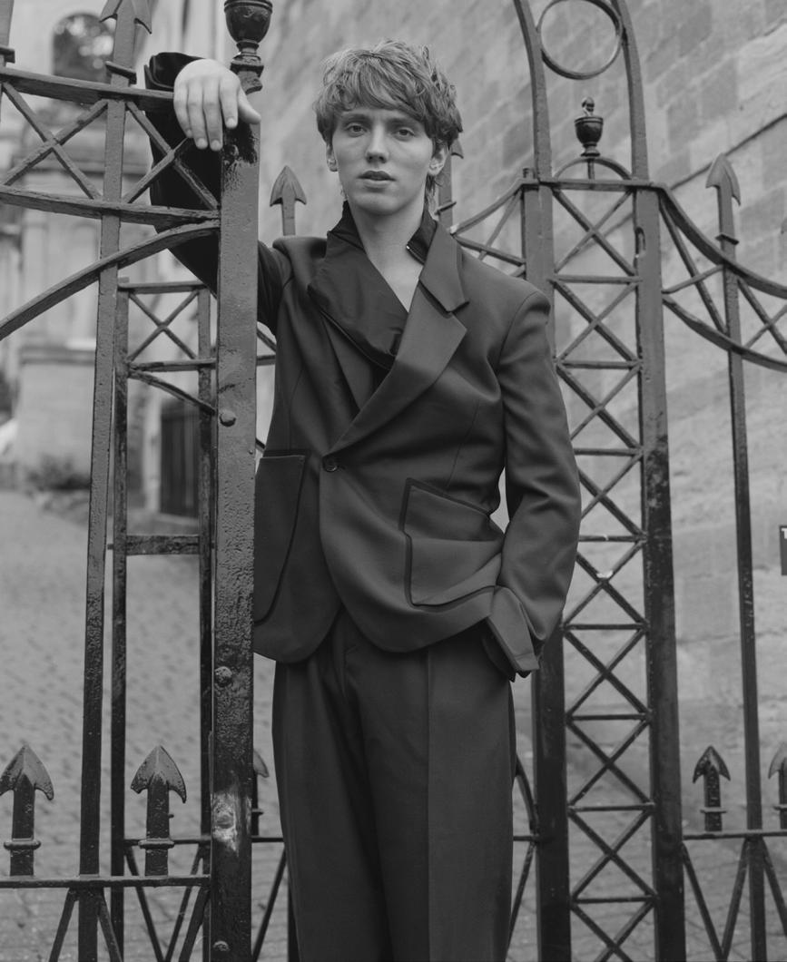 Will Sharpe, photographed in London by Arno Frugier, wears GIORGIO ARMANI AW22
