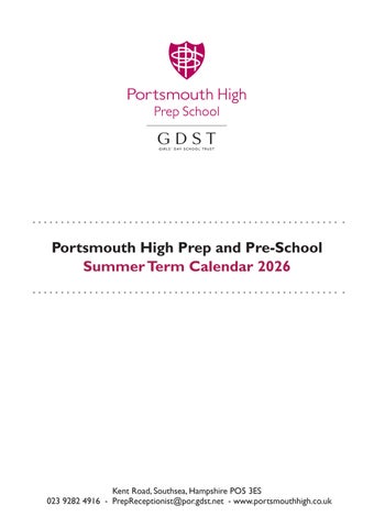 Portsmouth High Prep School SUMMER TERM 2026 Calendar