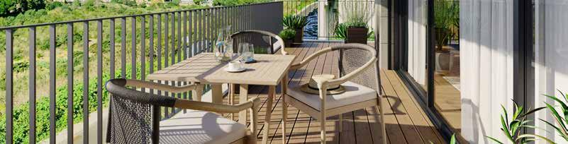 Quinta do Alverde is a private condominium composed of two buildings, where modern and sustainable architecture rises above a vast green expanse. The condominium maintains a unique relationship with the Outurela Garden and its sports complex, offering exclusive access through a private passage that connects the green areas of the condominium with the surrounding nature.