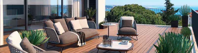 The project embraces color and materiality that harmonize with the city’s architecture. The bushhammered Lioz marble base, high-resistance microconcrete façades, bronze-colored lacquered frames and slats, complemented by abundant vegetation, bring the compositions to life.