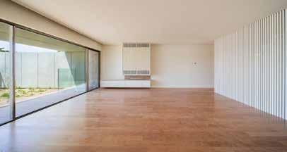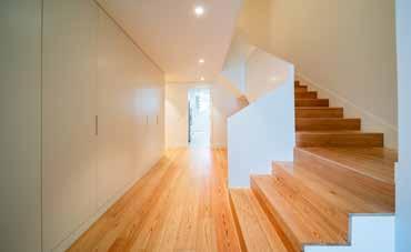 The Casas de Santo Amaro, with independent access via a pedestrian path, assert their individuality through interruptions emphasized by a vertical cut in the façade. With two private gardens, they are spread across four floors: the entrance floor includes a hall, kitchen, guest bathroom, and a living room opening onto the garden; the first floor offers a suite, two bedrooms, and a bathroom; the recessed second floor features a suite, an office, a library, and a terrace; and finally, the basement floor includes parking for three vehicles, utility spaces, and storage areas.
