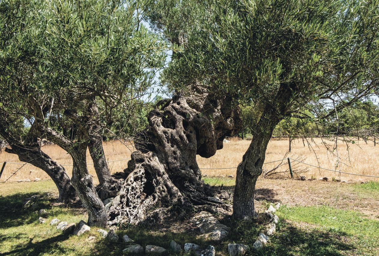 rização da proprietária, o António lhe desarrumou as montras e a sa la, e a mim me pôs a carregar um espelho pesadíssimo para captar a luz do Sol e trazê-la até aos ma ravilhosos bolinhos. Sentimo-nos atores ao fotografar esta tradição viva, tanto mais que a proprietária com uma firmeza cheia de generosi dade insistia para que provássemos um de cada exemplar dos néctares que íamos fotografando. Mas o melhor (apenas do ponto de vista intelectual, claro), estava ainda por chegar. Esperava-nos um mergulho na memória, não de dias, nem de anos ou séculos, mas sim de um bom par de milénios, na forma de uma imensa oliveira ali nasci da em tempos imemoriais e cuja provecta idade está amplamente certificada. Rodeámos devagar (e o António fotografou) o gigantes co lenho num respeito silencioso. Eu pensava nas conversas que esta árvore milenar poderia ter ouvido (se ouvidos tivesse), nas cenas a que assistira, nas línguas e costumes de que poderia ter sido testemunha taciturna. Talvez algum príncipe mouro ou até um dos nossos pri meiros reis se tivessem recolhido um dia à sua sombra. Ou um par de namorados. Ou um homem fa tigado de mourejar na terra. Ou… De tantas formas pensei e repensei que me deu a fome. Então levei dis cretamente a mão ao bolso e comi um dos saborosos queijinhos aí se cretamente guardados...