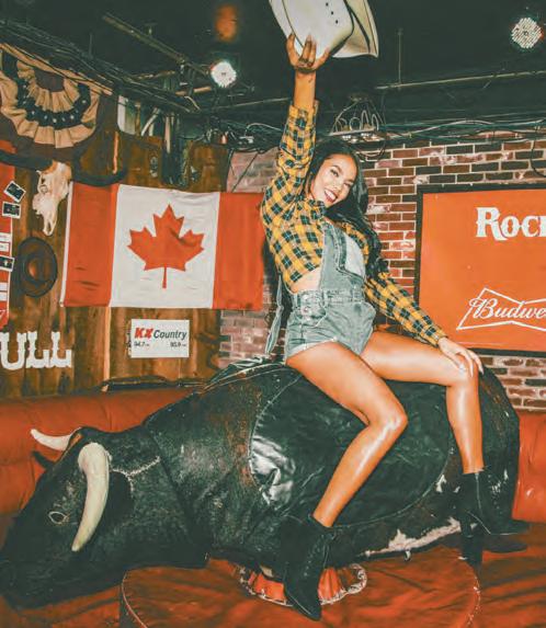The vibe is “Manhattan meets Dublin,” polished for a date but relaxed for a post-work pint. The room is defined by antique whisky mirrors, woodpanelled walls and a massive bar built by Irish-Canadian carpenters using wood from a local black walnut tree. Dark and solid, it feels like it’s always been there, perfectly matched to a new state-of-theart draft system pouring creamy pints of Guinness