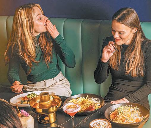 Sunlight floods through floorto-ceiling windows, hitting a palette of warm, earthy tones and plumes of pampas grass. Crucially for the neighbourhood, it’s actually spacious. You can bring a group here without feeling like you're sitting in your neighbor's lap.