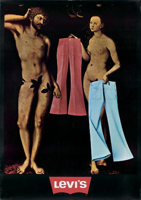 The following posters were all created under the art direction of Ida van Bladel at the Young and Rubicam agency in Belgium for the European market. “Photography has remained the main medium for posters, but the types of images have changed. In 1971, Levi’s distributed an image of a nude female back, reflecting the sexual liberation of the late 1960s and early 1970s and a period when denim jeans were synonymous with youth and rebellion” (V&A, p. 214).
