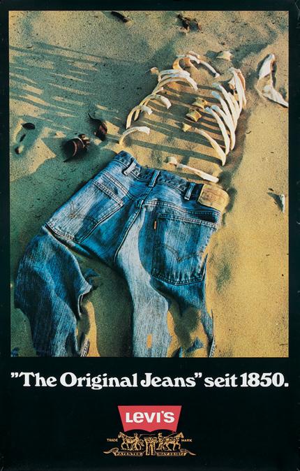 In this German-language promotion for Levi’s, the hardiness and longevity of Levi’s is clearly expressed—with a bit of morbid humor, naturally.