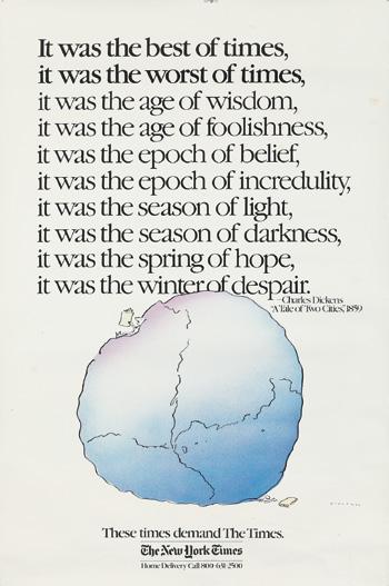 Years before an underaged Brooke Shields scandalously confessed that nothing came between her and her Calvins, van Bladel showed the world that slipping into a pair of Levi’s was as good as slithering into a very tight second skin. It’s a directly clever and succinct visual statement. The Antwerp-born designer was the art director at Young & Rubicam International in Brussels, where this remarkable poster was created. And while it was a huge hit in Europe, the image was not approved for American distribution. This uncut printer’s proof emphasizes Levi’s new wares specifically for women; it’s quite rare!