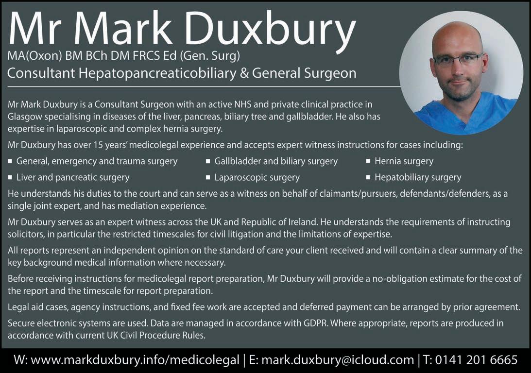 Mr Meleagros Completes 3-4 expert reports per month on medical negligence cases and abdominal injury/major abdominal trauma cases. He has reported extensively on cases involving abdominal laparoscopy surgery and hernia surgery.