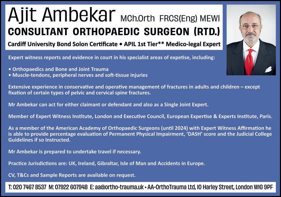 Mr Marston has 25 years experience as an expert witness. His special interest is lower limb orthopaedics and trauma, particularly hip and knee arthroplasty, joint injuries and fractures. His main medico legal work is with alleged clinical negligence. He also takes on selected personal injury cases.