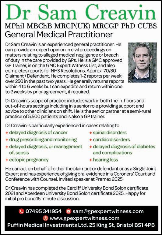 T: 07464 425 444 E: marstonmedicolegal@gmail.com W: www.marstonmedicalpractice.co.uk